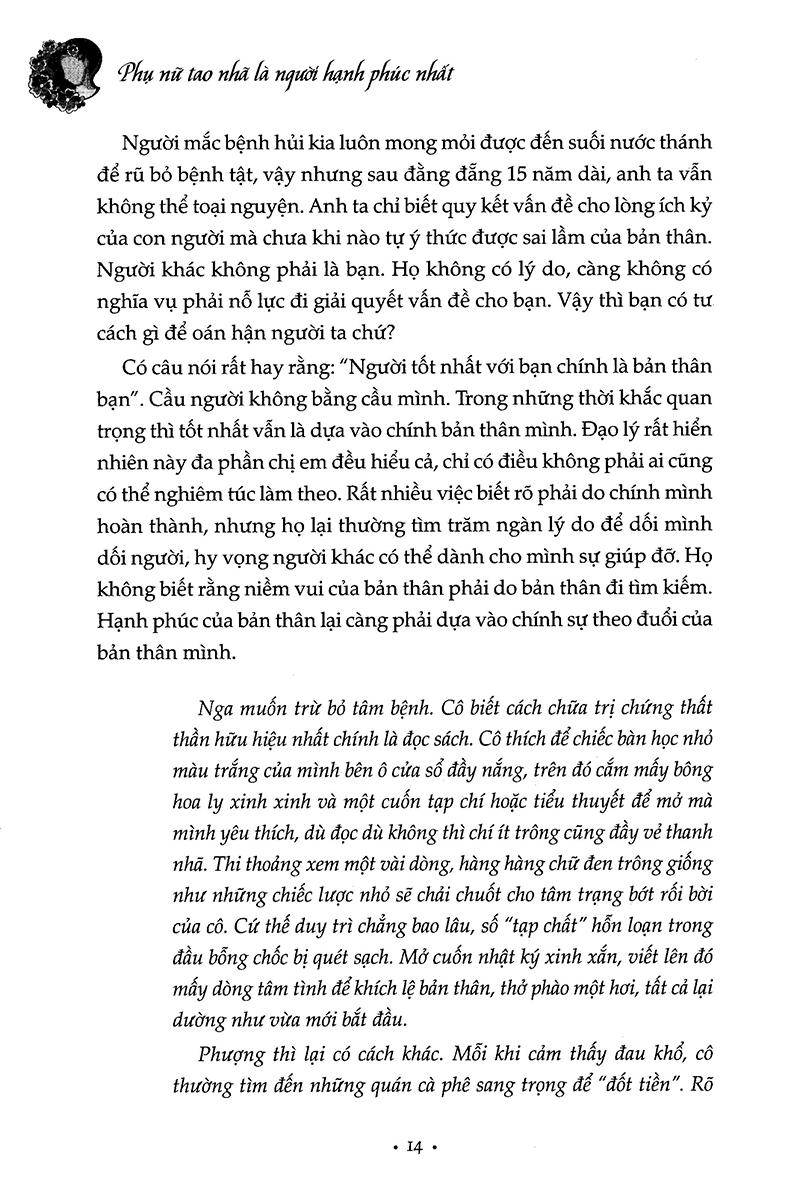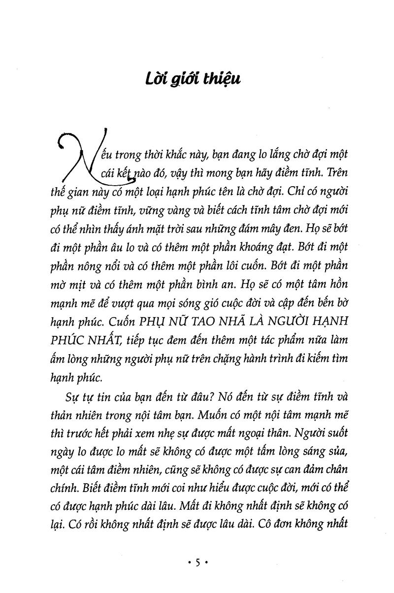 Cuốn Phụ nữ tao nhã là người hạnh phúc nhất sẽ làm ấm lòng những người phụ nữ trên chặng hành trình đi kiếm tìm hạnh phúc.