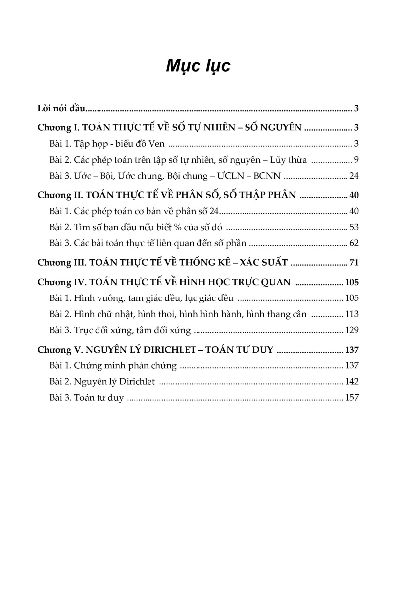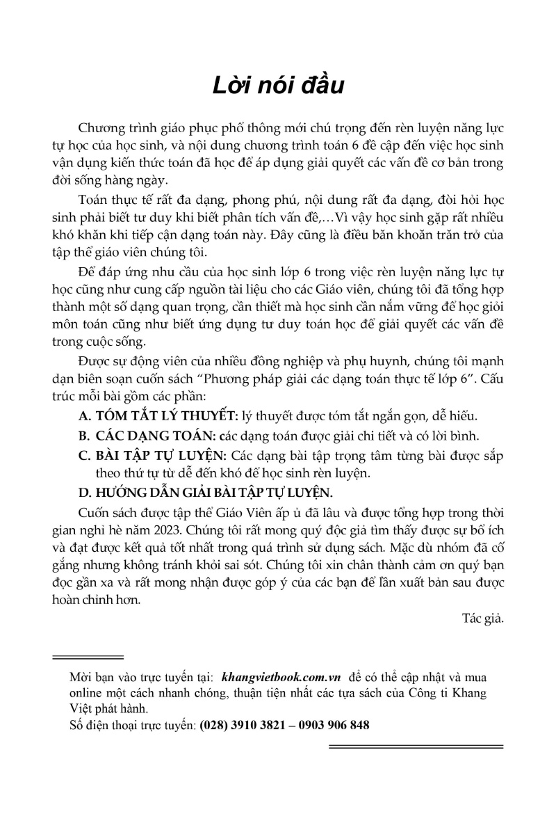 Toán thực tế rất đa dạng, phong phú, nội dung rất đa dạng, đòi hỏi học sinh phải biết tư duy khi biết phân tích vấn đề,…Vì vậy học sinh gặp rất nhiều khó khǎn khi tiếp cận dạng toán này để đáp ứng nhu cầu của học sinh lớp 6 trong việc rèn luyện nǎng lực tự học cũng như cung cấp nguồn tài liệu cho các Giáo viên, chúng tôi đã tổng hợp thành một số dạng quan trọng, cần thiết mà học sinh cần nắm vững để học giỏi môn toán cũng như biết ứng dụng tư duy toán học để giải quyết các vấn đề trong cuộc sống.