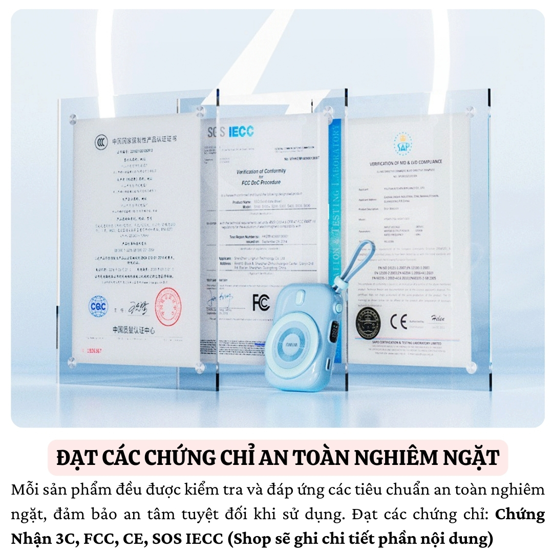 An Toàn Tuyệt Đối với Chứng Nhận Chất Lượng: Được trang bị các chứng nhận an toàn 3C, FCC, CE, SOS IECC, WIWU W-P049 đảm bảo chất lượng và độ tin cậy cao. Bạn hoàn toàn yên tâm khi sử dụng trong mọi tình huống, kể cả khi di chuyển.