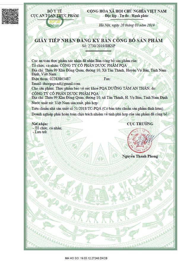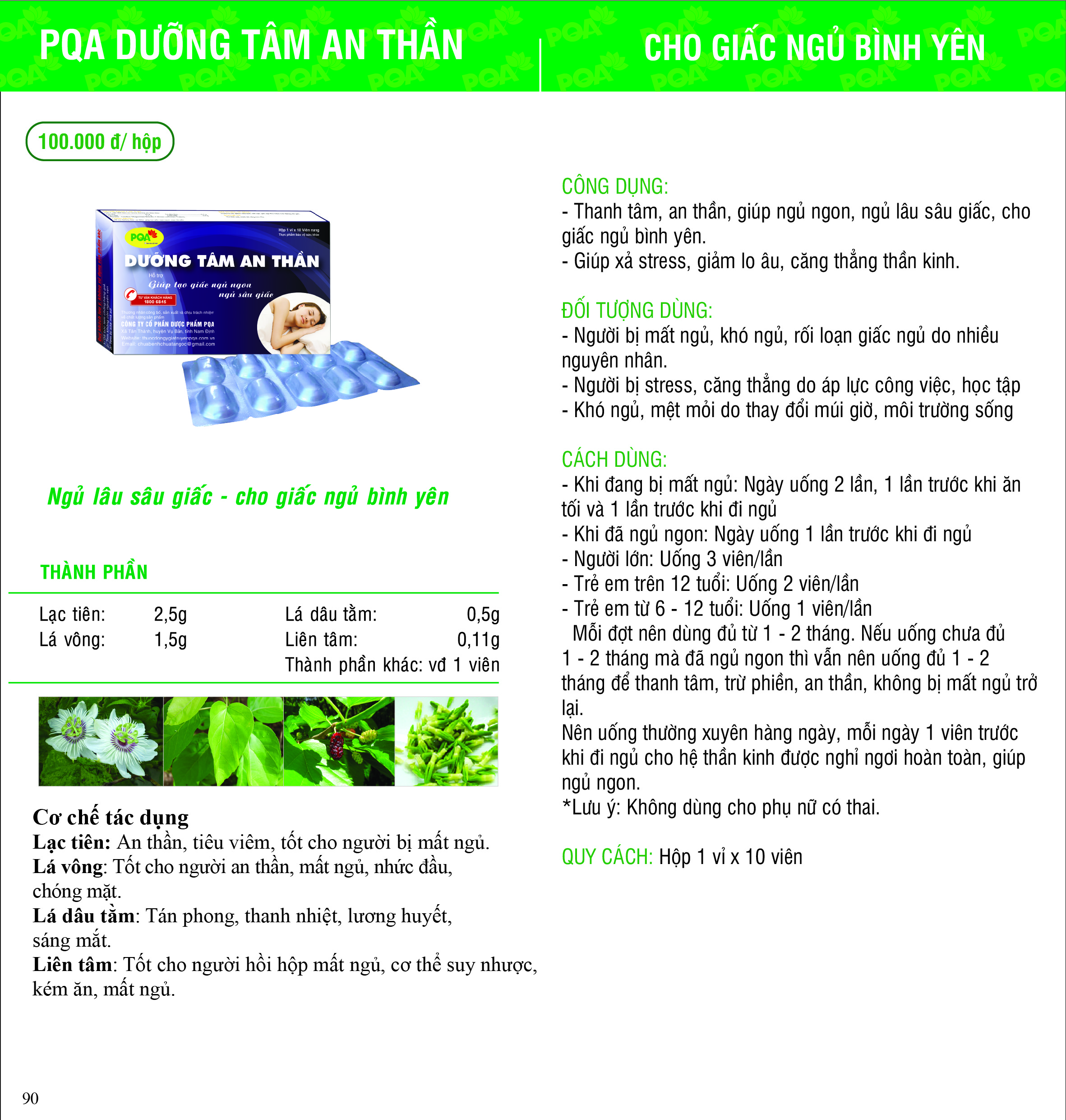 THÔNG TIN PQA THANH TÂM AN THẦN PQA Thanh Tâm An Thần là dược phẩm hỗ trợ giúp an thần ngủ ngon, ngủ sâu giấc cho người bị mất ngủ, thiếu ngủ, không ngủ sâu giấc.
