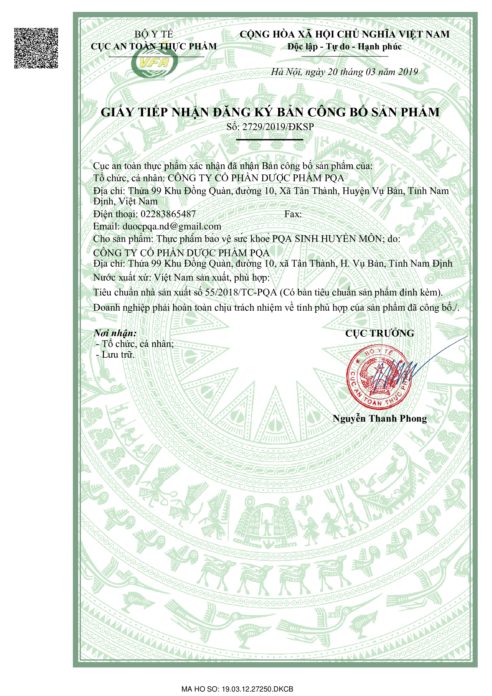 THÔNG TIN PQA NHUẬN TRÀNG DẠNG ỐNG