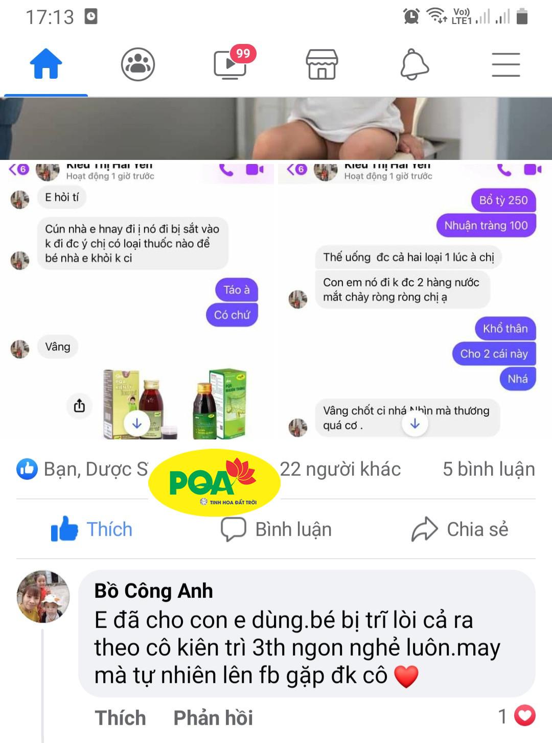 Nhuận Tràng PQA Thành Phần Từ Thiên Nhiên Giúp Giảm Táo Bón Dùng Cho Bé Bị Khó Tiêu Lâu Ngày Hộp 125ml THÔNG TIN SẢN PHẨM: - Xuất xứ: Việt Nam - Dung tích: Hộp