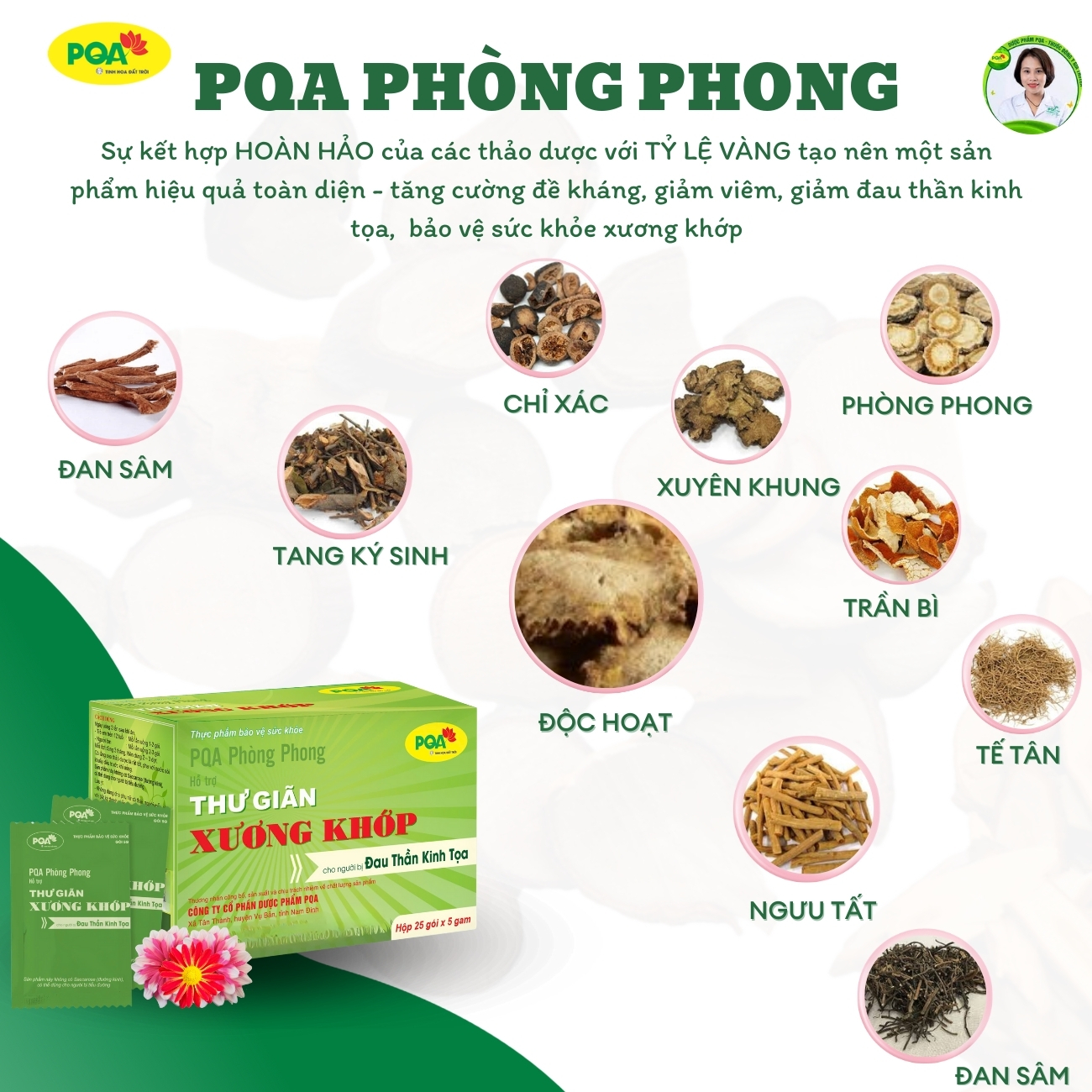 Mua tại TiktokPhòng Phong PQA Thư Giãn Xương Khớp Trừ Phong Thấp Mạnh Gân Tốt Và Thần Kinh Tọa Hộp 25 gói Gói THÔNG TIN SẢN PHẨM: