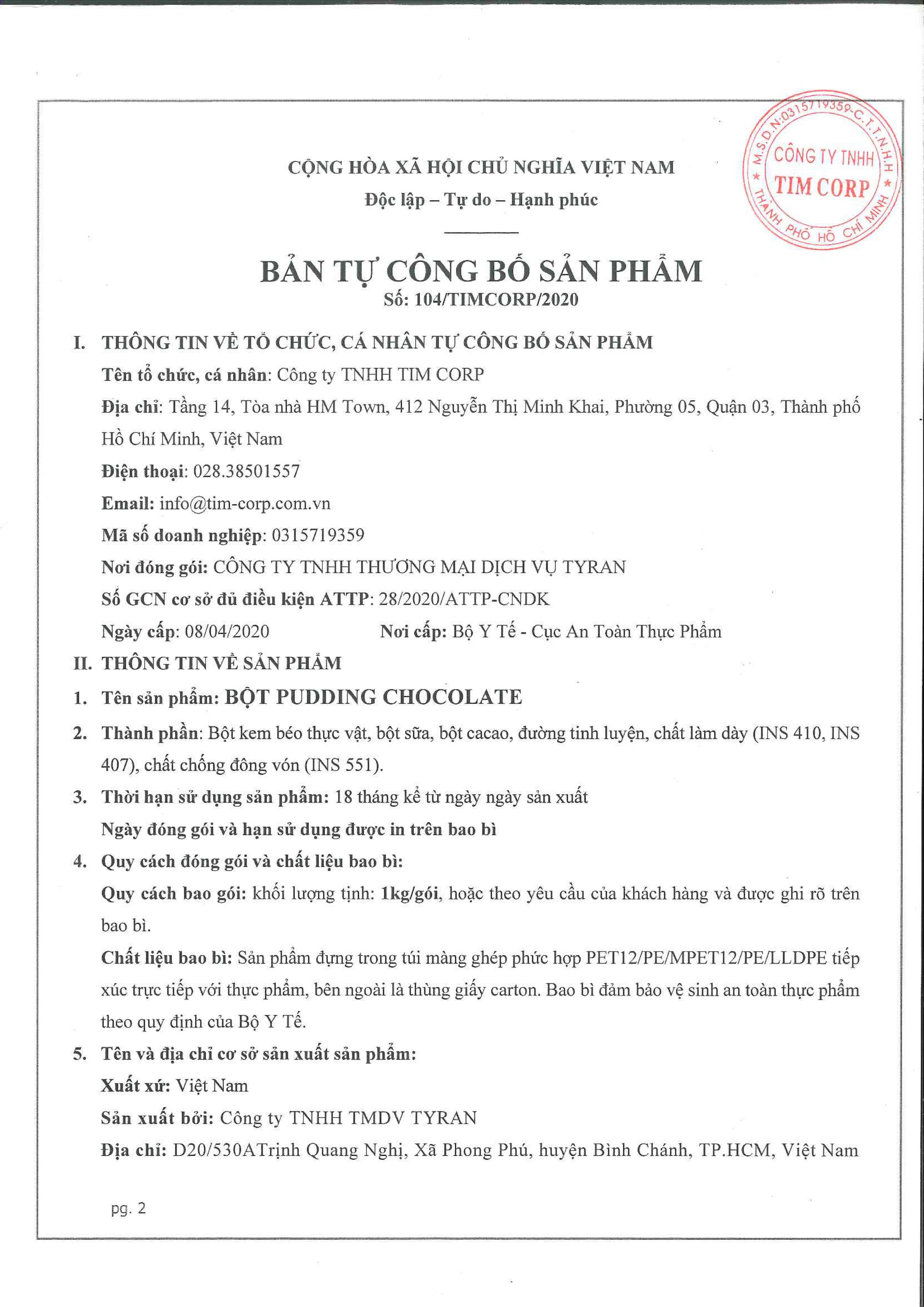 Chứng nhận: Sản phẩm được sản xuất tại nhà máy Gia Thịnh Phát - đạt chứng nhận tiêu chuẩn chất lượng quốc tế ISO 22000:2018. Mô tả: ƯU ĐIỂM CỦA BỘT PUDDING SÔ CÔ LA