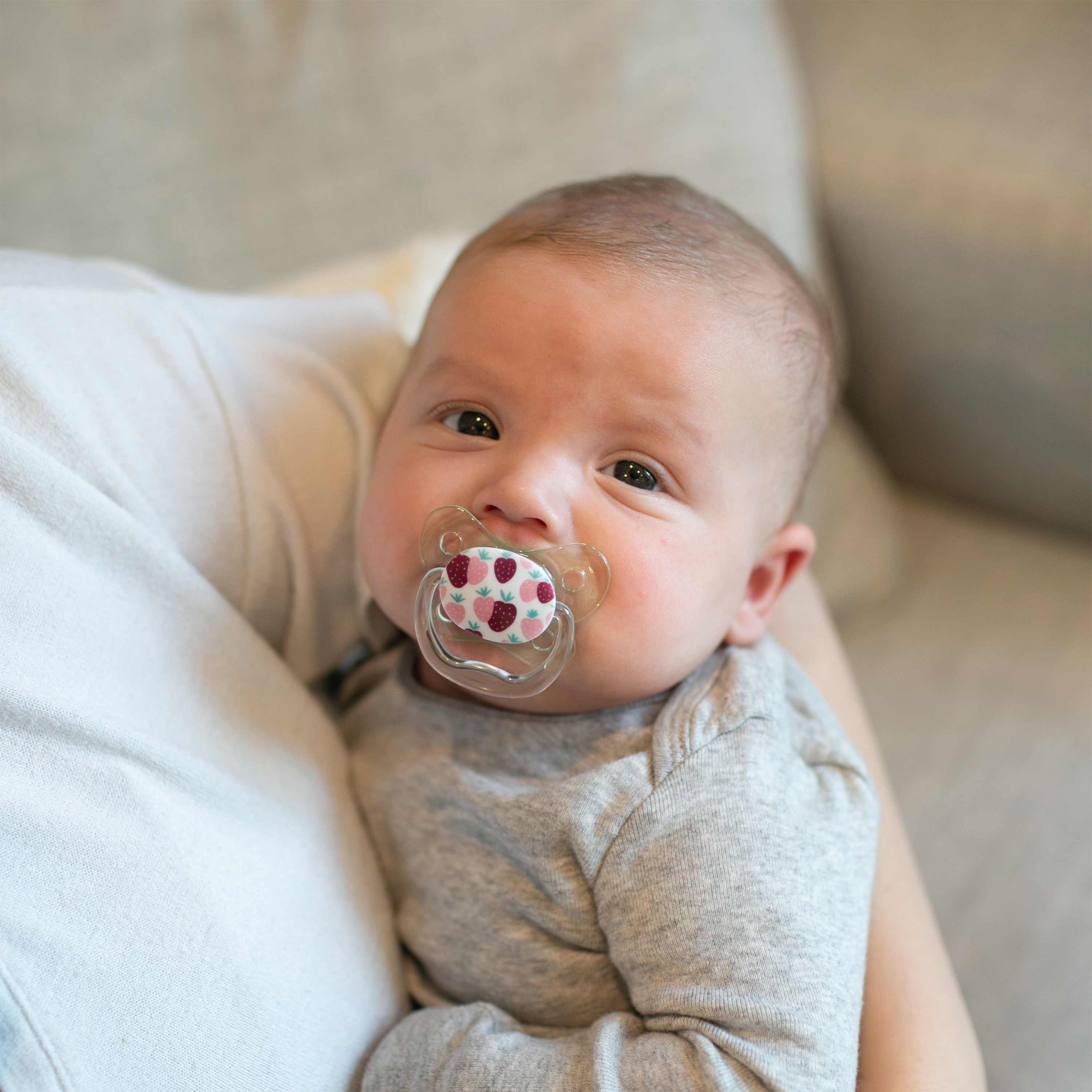 ✨[ PV12302-GBX ] Bộ 2 ty ngậm hỗ trợ chống đột tử/chỉnh nha/chống vẩu Dr.Brown's Prevent họa tiết thỏ & trái dâu ( 0-6m )
