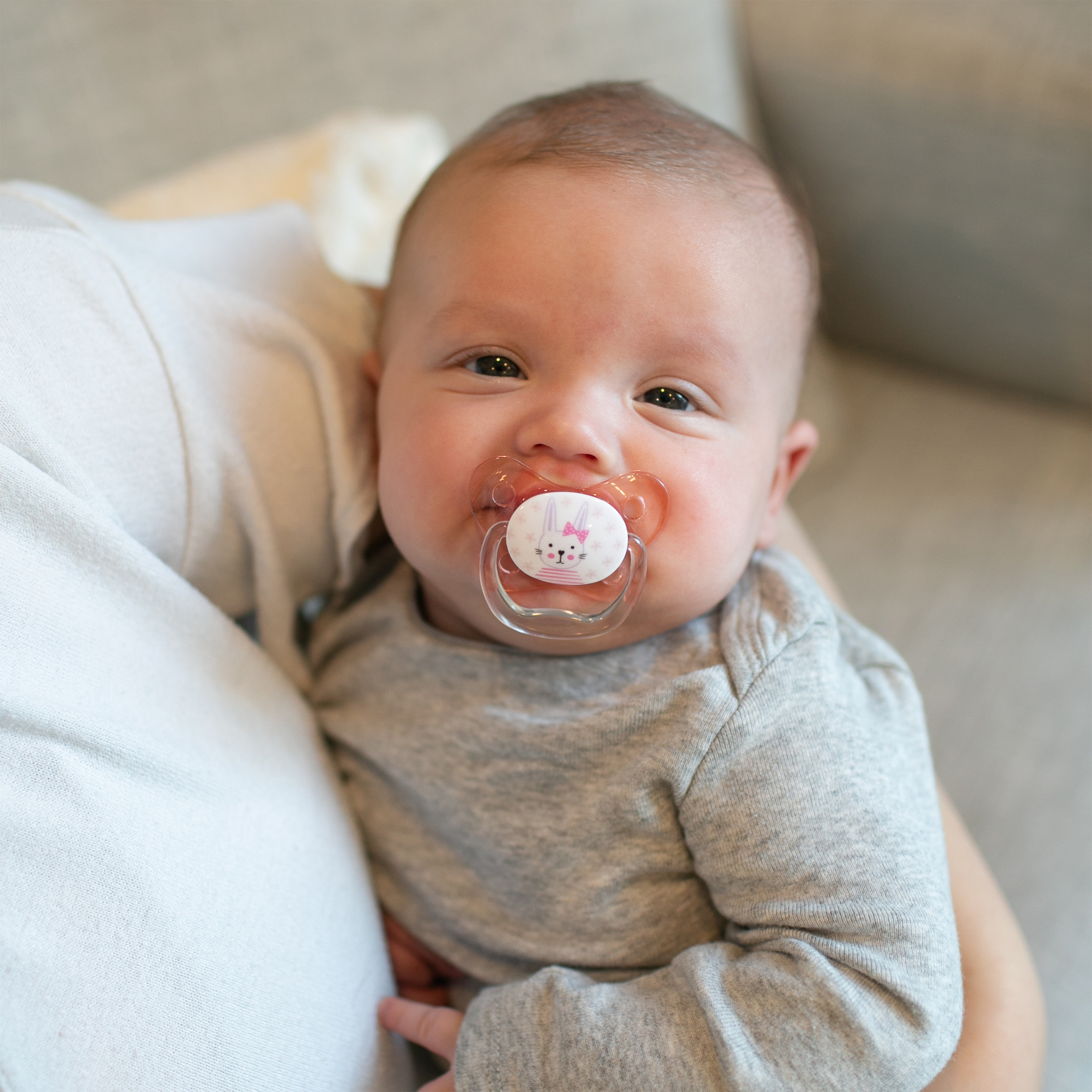 Dỗ bé bú sữa ngay từ khi sinh ra Vừa vặn, ngay cả vào ban đêm Có nút phát sáng trong bóng tối Thiết kế theo cấu trúc vòm miệng và không chứa BPA 1