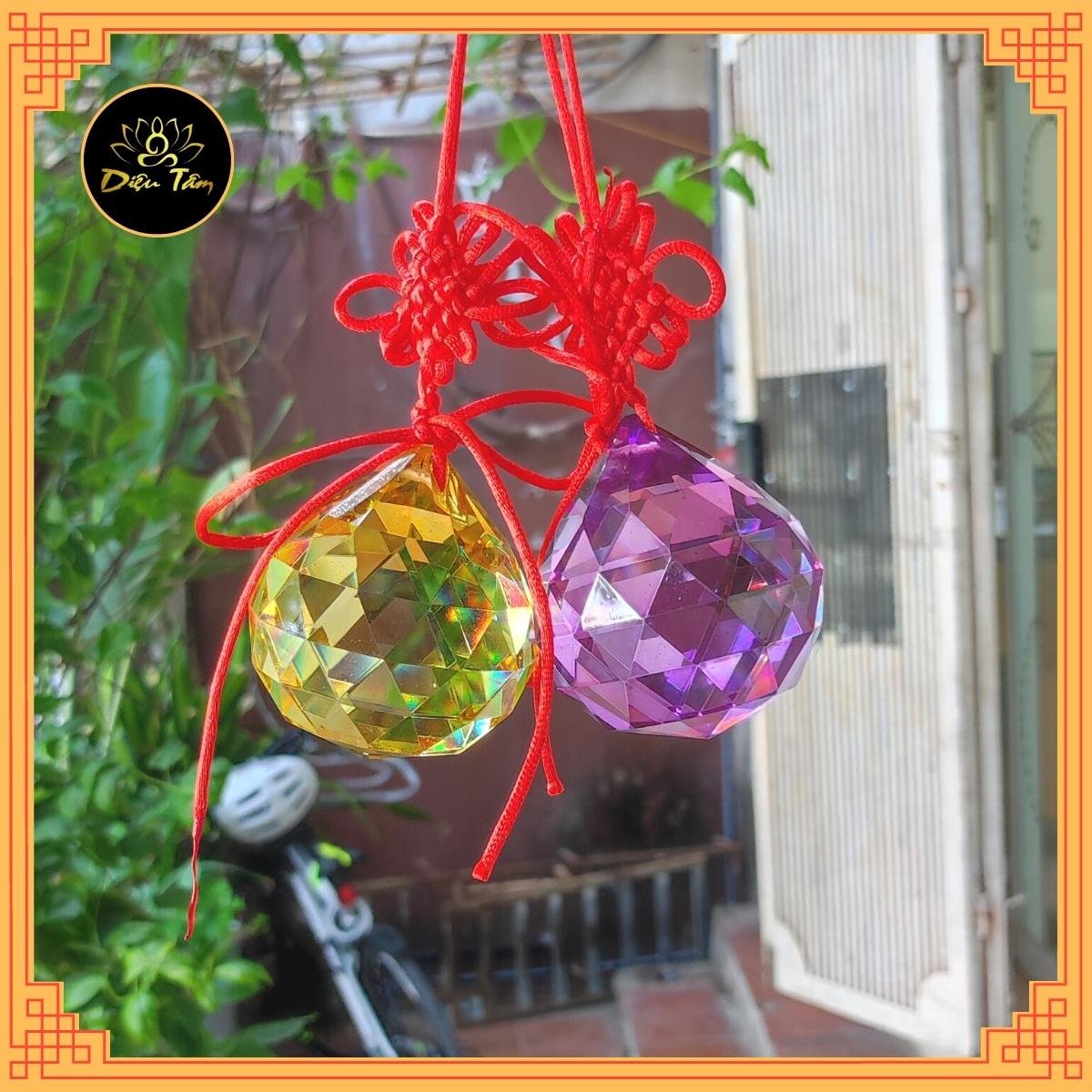 Quả Cầu Treo Thủy Tinh Vát Cạnh nhìn giống như viên kim cương, có thể trang trí nhờ vẻ bề ngoài đẹp, ngoài ra còn có nhiều tác dụng tốt trong phong thủy.