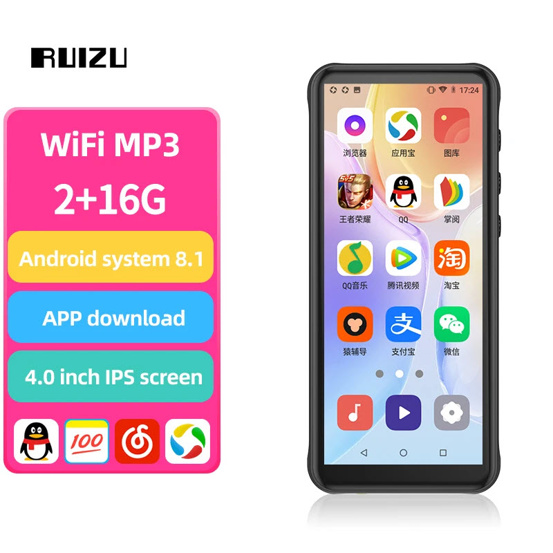 Máy Nghe Nhạc MP3 Ruizu Z80 HĐH Android 8.1 RAM 2Gb/ROM 16Gb Bộ Xử Lý 8 Nhân Kết Nối Wifi Bluetooth 4.2 Màn HD 4 inches. RUIZU Z80 WiFi Android MP5 MP4 MP3 Player Bluetooth