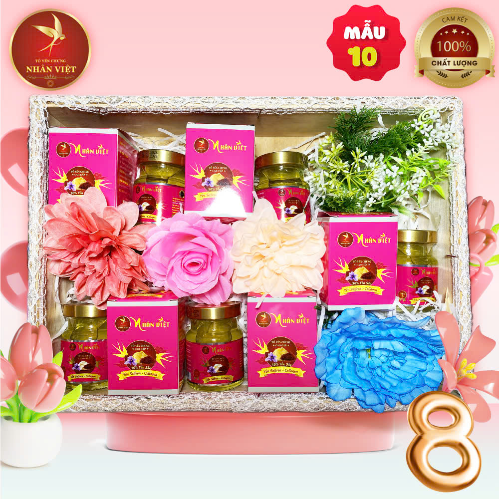 ***Hộp quà tặng yến sào NHÂN VIỆT - Món quà tinh tế và ý nghĩa cho ngày 8/3, thể hiện sự quan tâm và trân trọng của bạn dành cho những người phụ nữ đặc biệt trong cuộc đời.