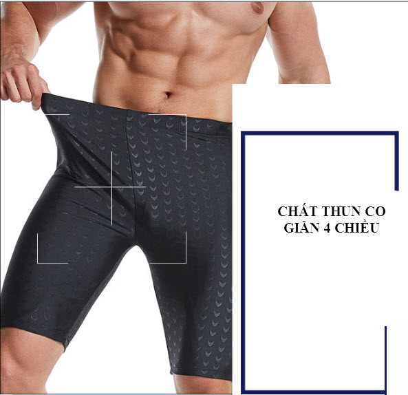 Trẻ trung và cá tính hơn trong chiếc quần bơi nam loại dài mang phong cách chuyên nghiệp của vận động viên bơi lội, có chiều dài ngang gối.