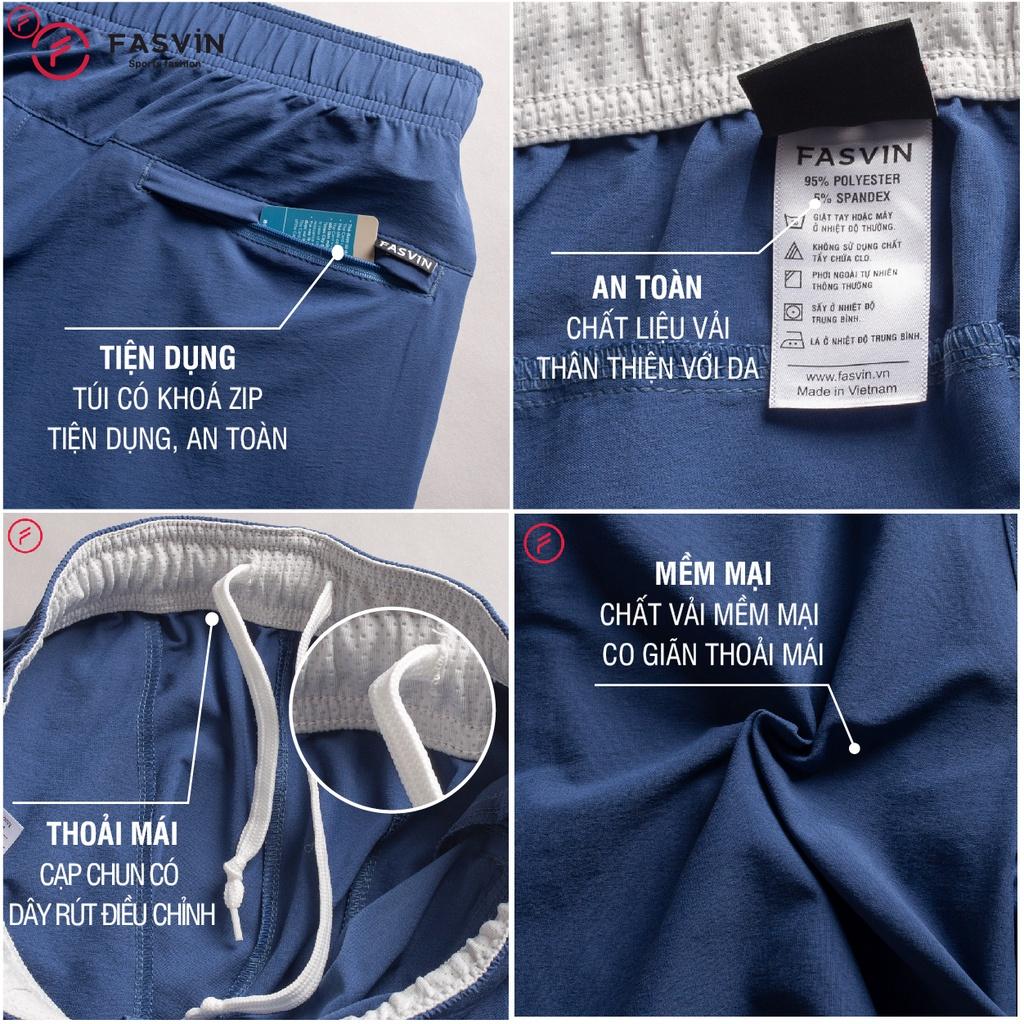 => Quần đùi nam ngắn chạy bộ FASVIN vải Dù Gió nhẹ mát có khóa túi tiện dụng thể thao hay mặc nhà được sản xuất trong nhà máy của FASVIN tại Việt Nam. Với