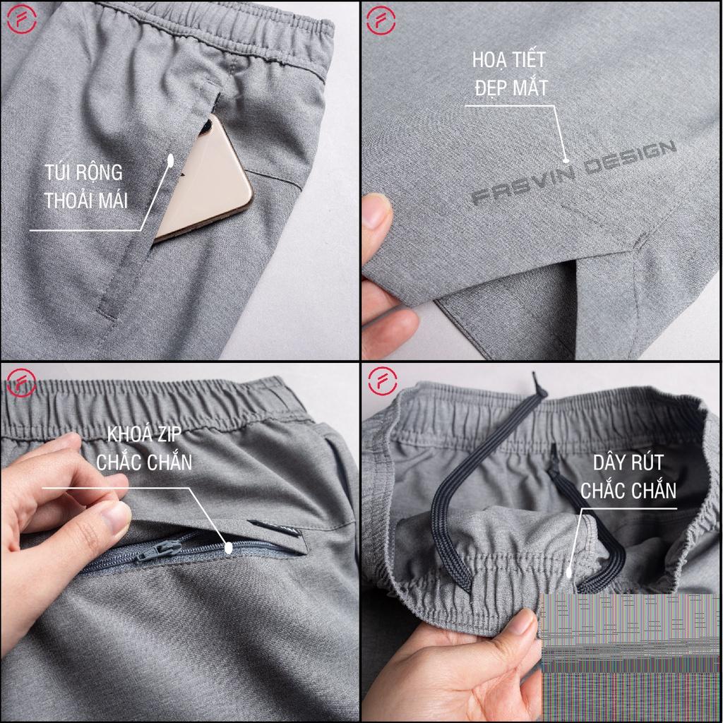 => Quần đùi nam ngắn chạy bộ FASVIN vải Dù Gió nhẹ mát có khóa túi tiện dụng thể thao hay mặc nhà được sản xuất trong nhà máy của FASVIN tại Việt Nam. Với