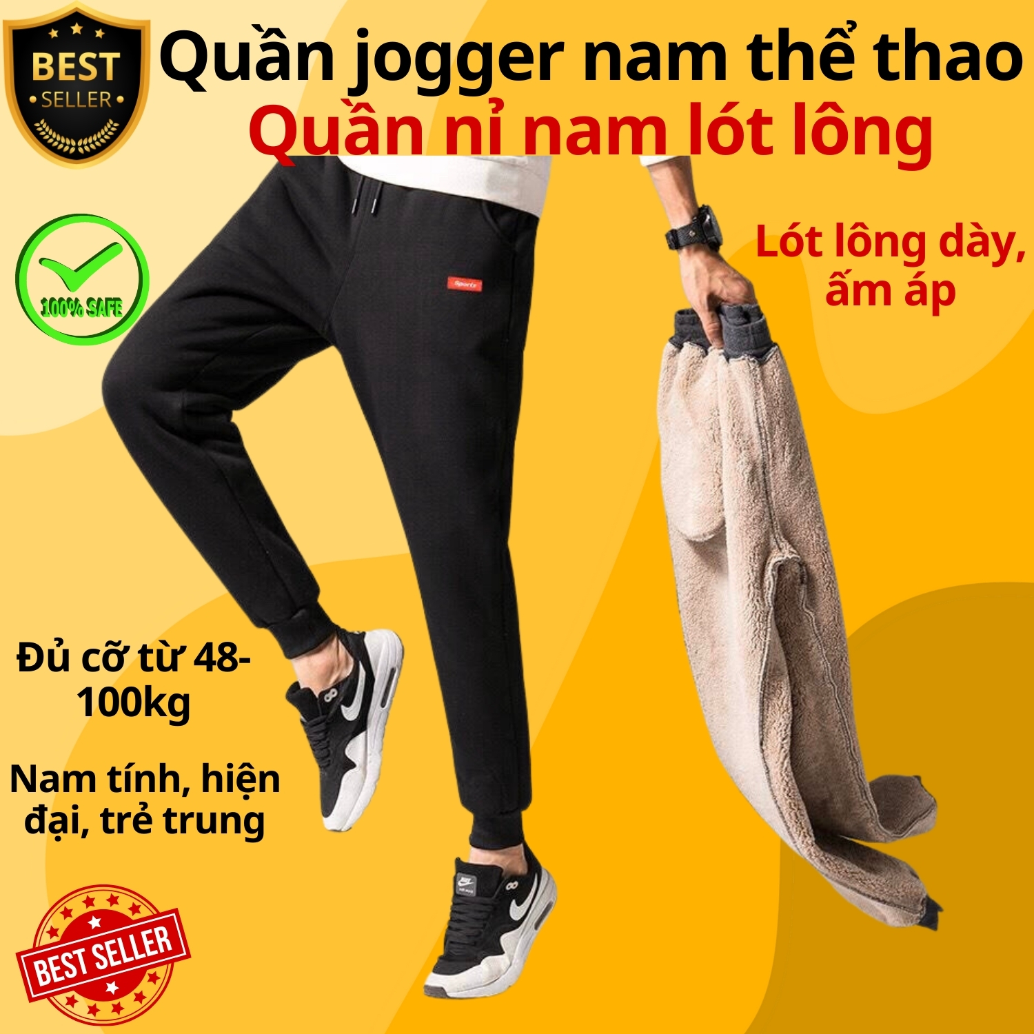 Quần jogger nam thể thao lót lông cao cấp dày dặn đủ size từ 48-100kg nỉ lông cho nam #thinhanh