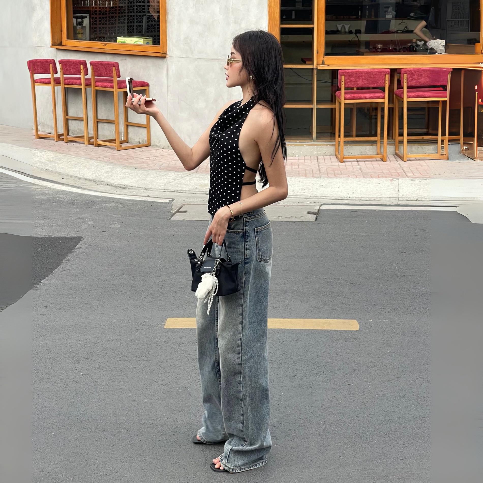 Mô tả sản phẩm - Quần jean ống rộng sẽ giúp chiều cao của bạn được “ăn gian” đáng kể với hiệu ứng kéo dài chân và che khuyết điểm đặc trưng của kiểu quần