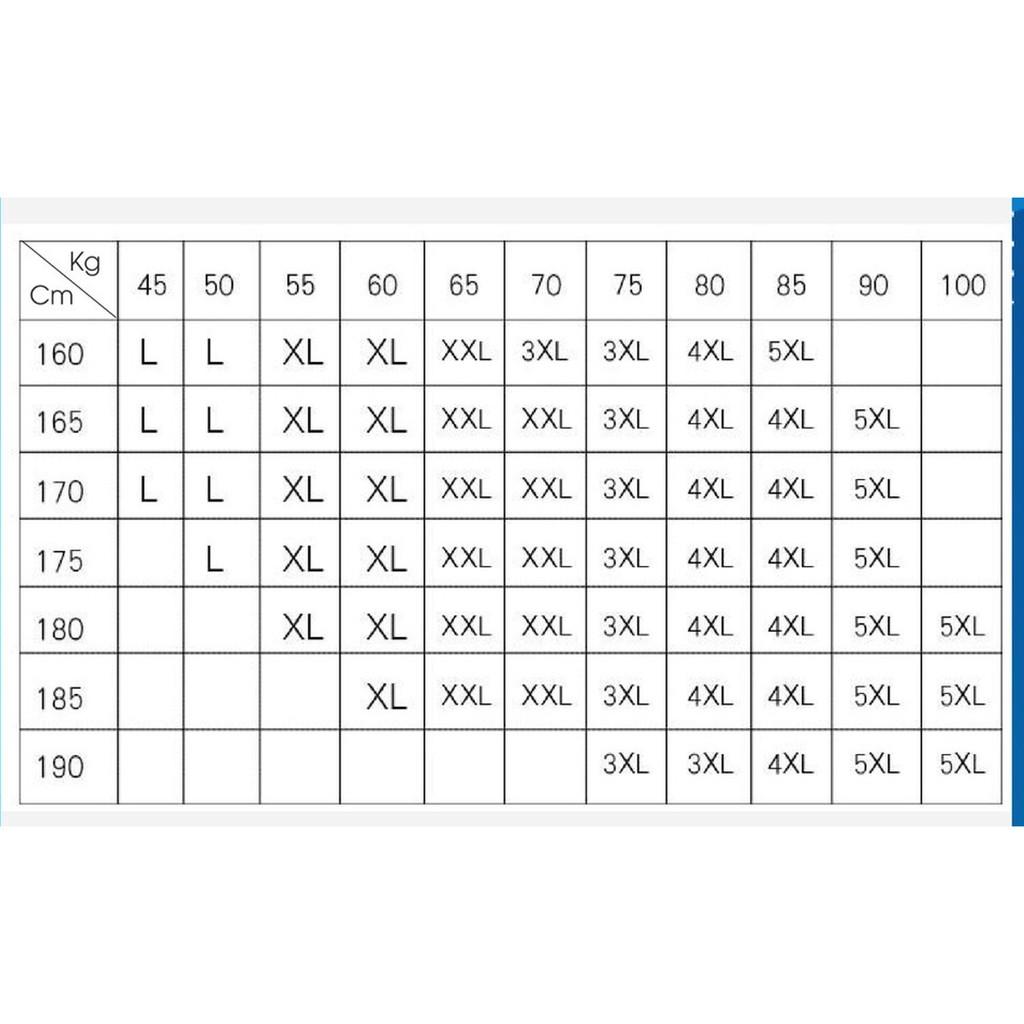 Giúp bạn chọn size : Lưu ý bảng chọn size chỉ là tương đối dành cho người cao 1m7 Size L: 40-49kg Size XL: 50-57kg Size XXL: 58-64 kg Size 3XL: 65-74kg Tùy theo chiều