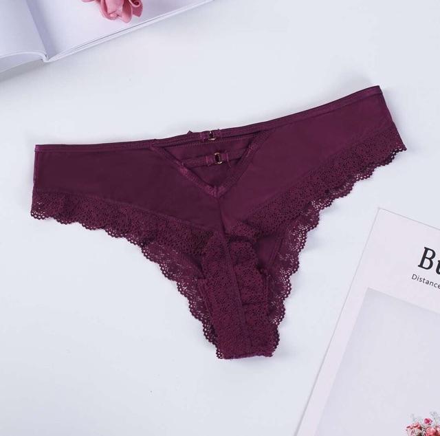 Free Size<55kg 1. Tên sản phẩm: Quần lót lọt khe dành cho nữ 2. Chất liệu: Ren 3. Màu sắc: Nhiều màu tùy chọn 4. Kích thước sản phẩm: Một kích cỡ 5. Phong cách:
