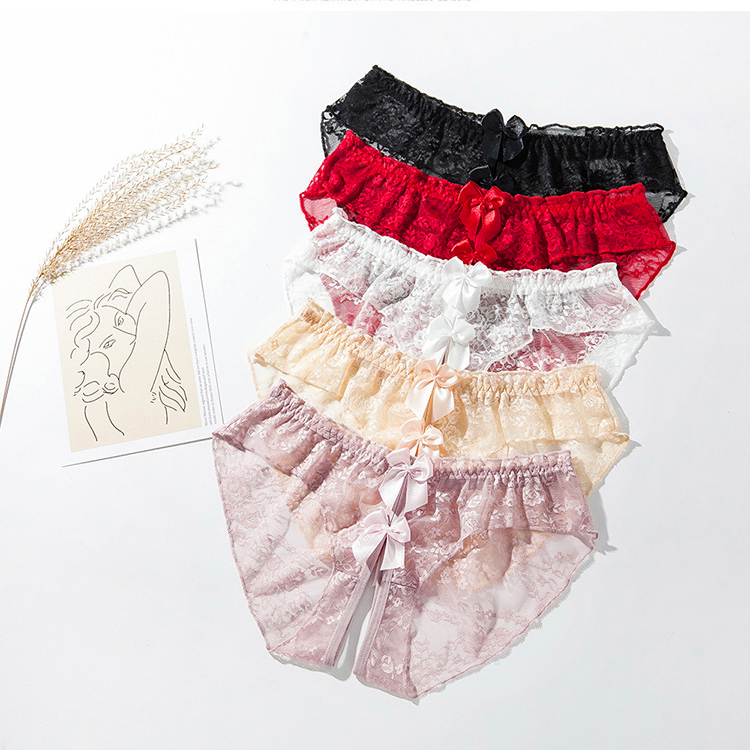 ✨Quần lót ren lọt khe xẻ đáy không đũng đính nơ gợi cảm