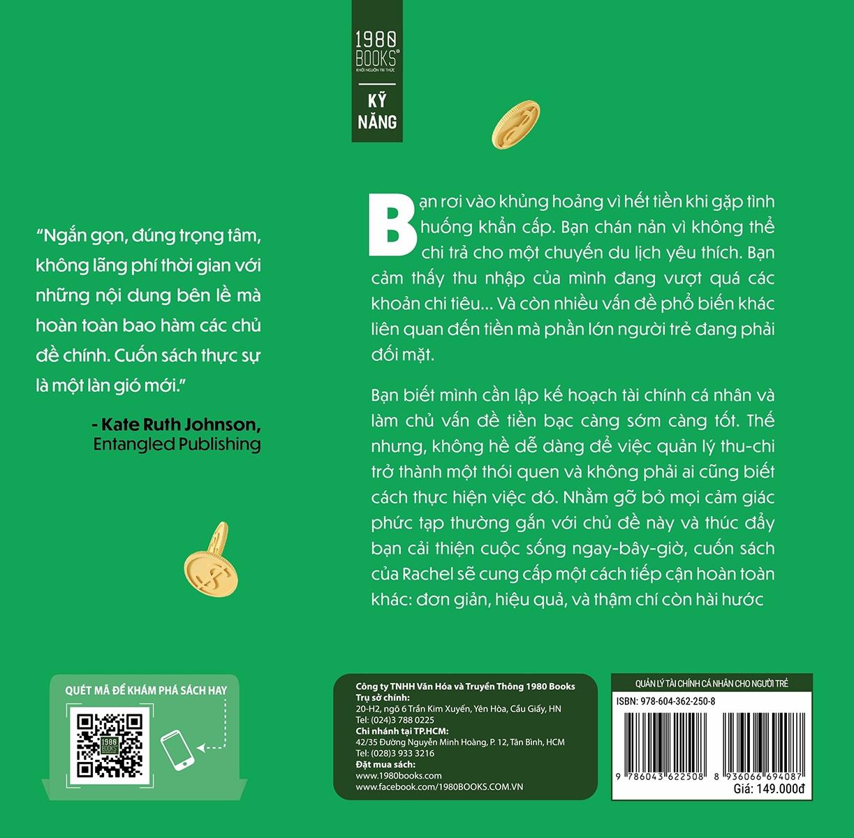 Chúng ta biết cần phải lập kế hoạch tài chính cá nhân và làm chủ vấn đề tiền bạc càng sớm càng tốt. Thế nhưng, không hề dễ dàng để việc quản lý thu-chi trở thành một thói quen và không phải ai cũng biết cách thực hiện việc đó. Nhằm gỡ bỏ mọi cảm giác phức tạp thường gắn với chủ đề này và giúp cải thiện cuộc sống ngay-bây-giờ, cuốn sách của Rachel sẽ cung cấp một cách tiếp cận hoàn toàn khác: đơn giản, hiệu quả, và thậm chí còn hài hước.