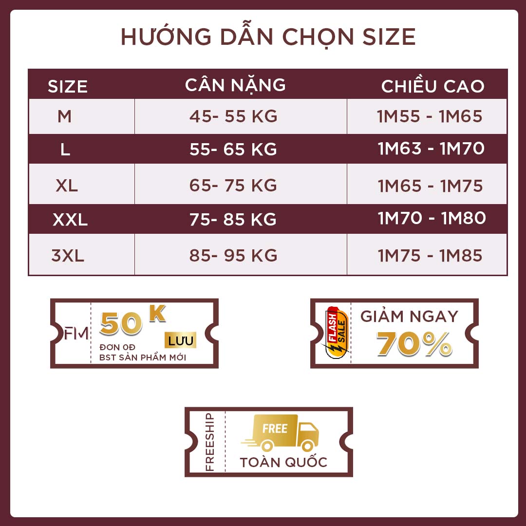 - M Chiều cao 1M55-1M65 / Cân nặng: 45- 55 kg