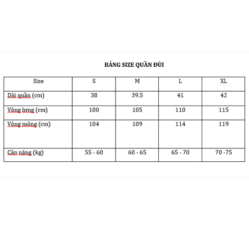 Dimentions Size Lưng (cm) Dài (cm) Mông (cm) Ống (cm) M 70 44 88 48 L 76 46 92 50 XL 80 55 100 56 · Số đo có sai số +/-2cm