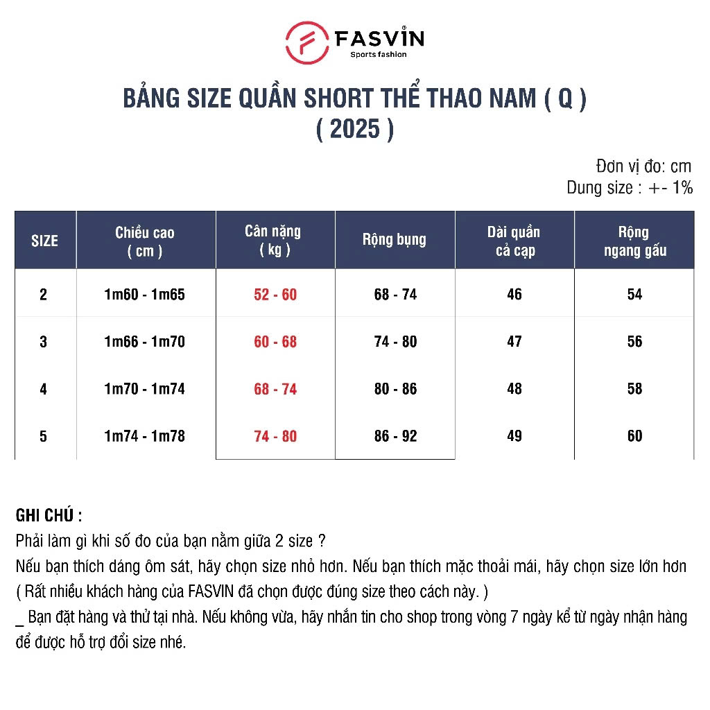 ✨Quần Short Nam Thể Thao FASVIN HL25662.HN Vải Thun Lạnh Cao Cấp Mềm, Nhẹ, Mát, Hàng Nhà Máy