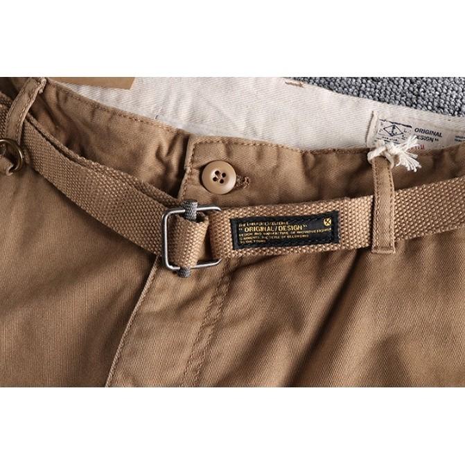 Shorts đùi kaki túi hộp khoá kéo phối dây kèm thắt lưng điều chỉnh đc
