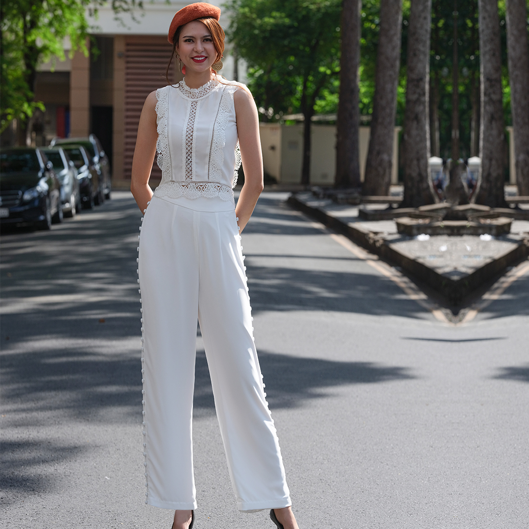 ✨Quần Vô Số Nút Quần Ống Suông Quần Dài Nữ Đẹp Thời trang thiết kế Hity PAN052 (Trắng Kim Cương)