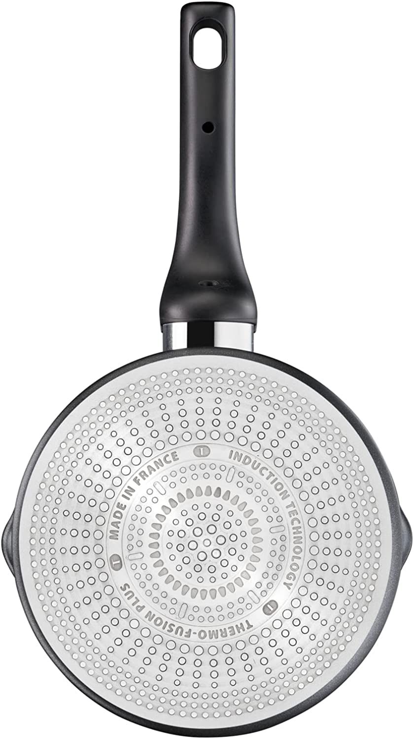 Chất liệu nhôm cao cấp với chất chống dính siêu bền Tefal Titanium Extra được gia cố bằng các hạt titan cực bền, không chứa PFOA với đặc tính chống dính hoàn hảo, chịu được sự mài mòn cao nhất và có thể sử dụng với các dụng cụ nhà bếp bằng kim loại.