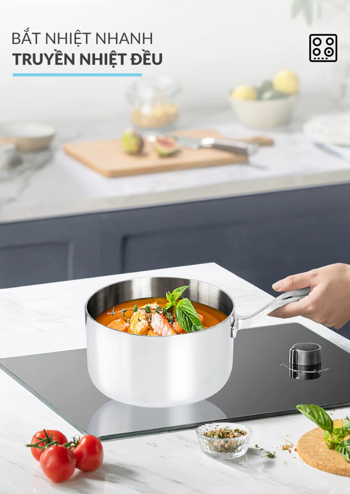 Sử dụng đa năng: Tương thích với mọi loại bếp: bếp từ, bếp ga, bếp hồng ngoại.