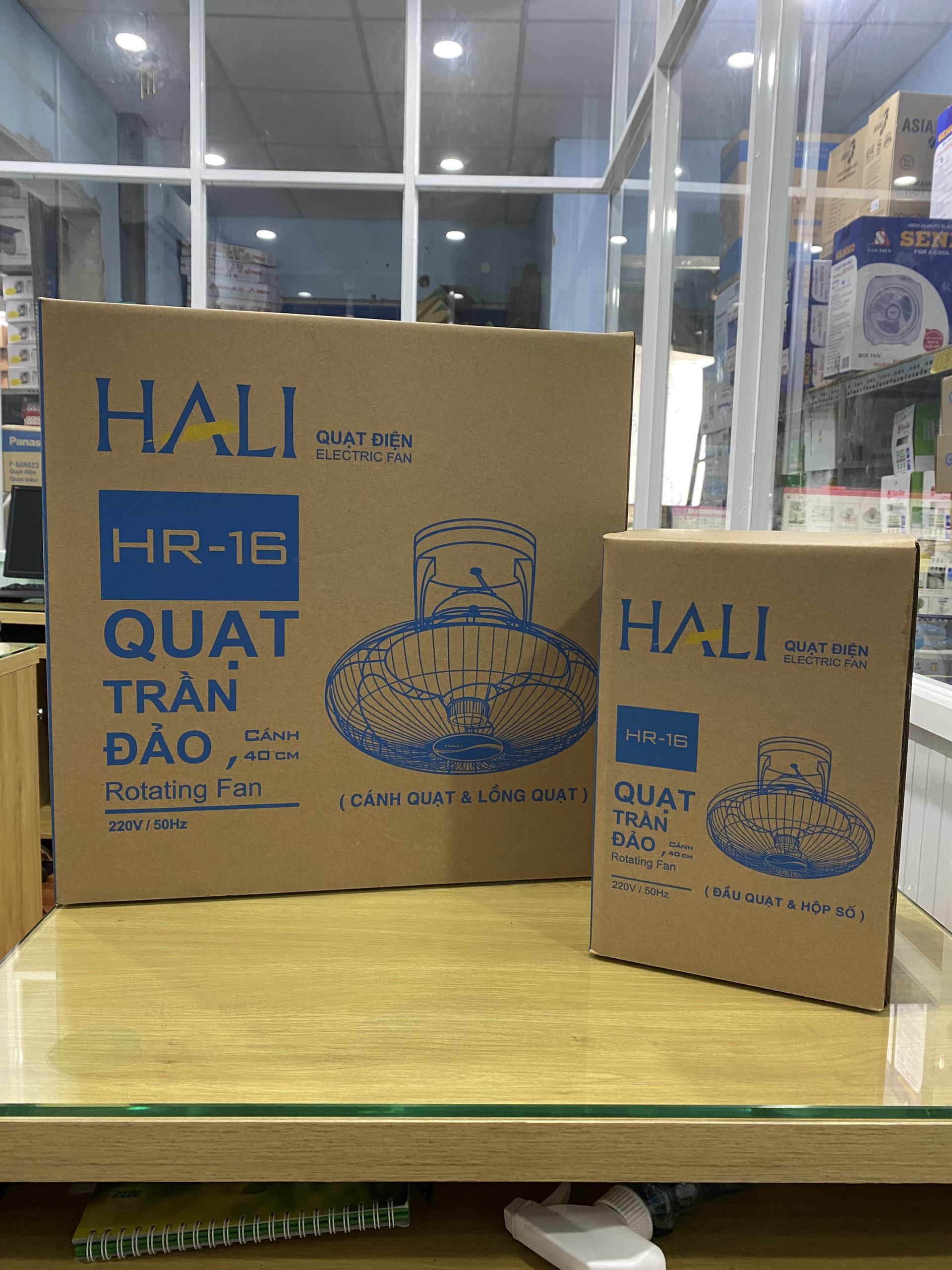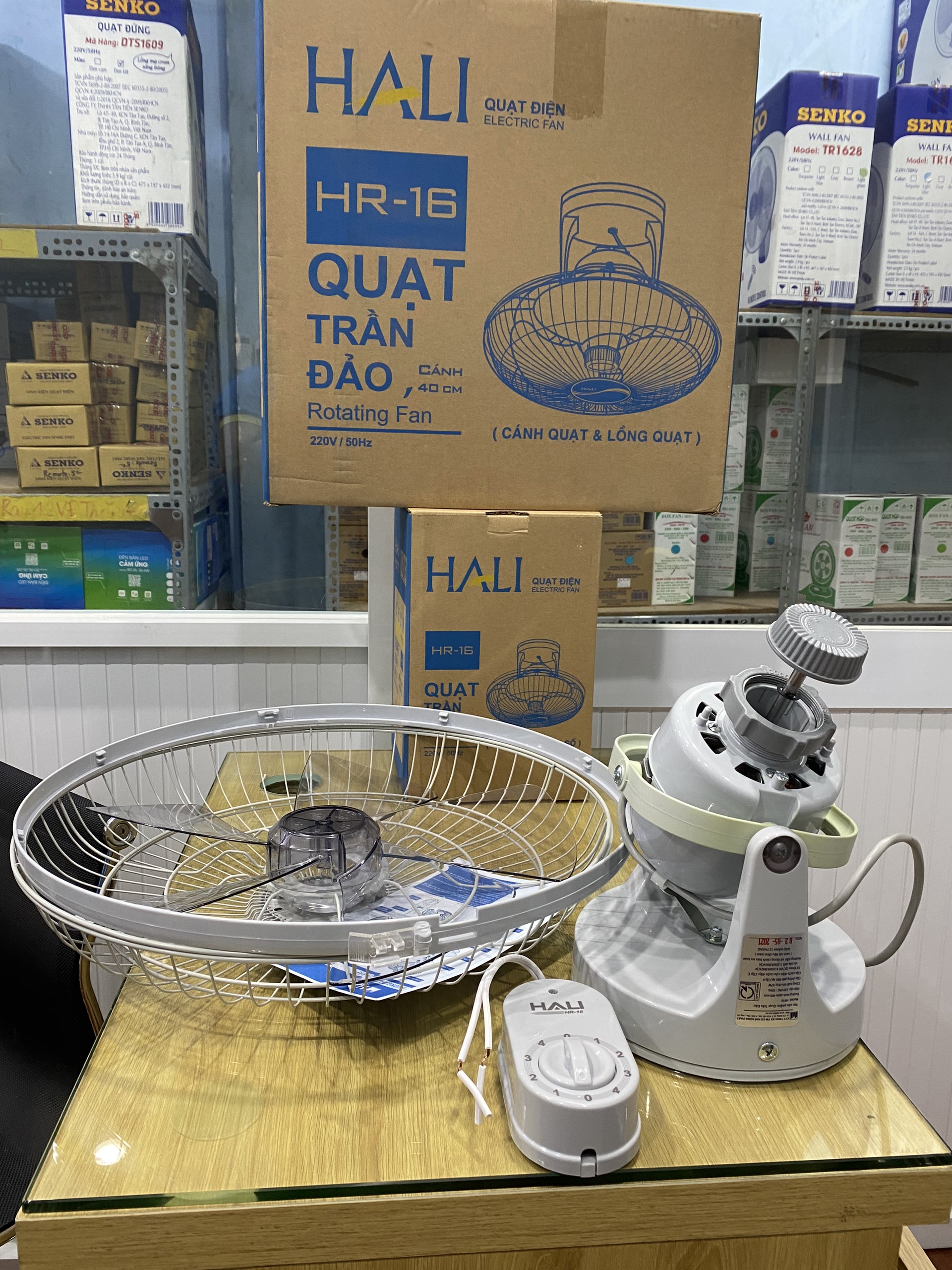 Quạt trần đảo HALI HR-16 - Công suất: 47W (220V - 50Hz) - Đường kính cánh: 400mm - Đảo hướng 360o - Hộp số cơ 4 số - Tốc độ gió: 4 tốc độ -