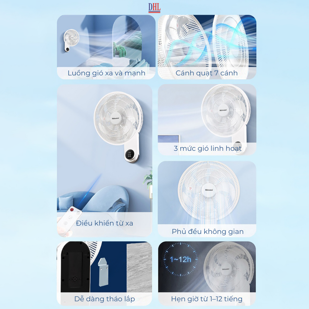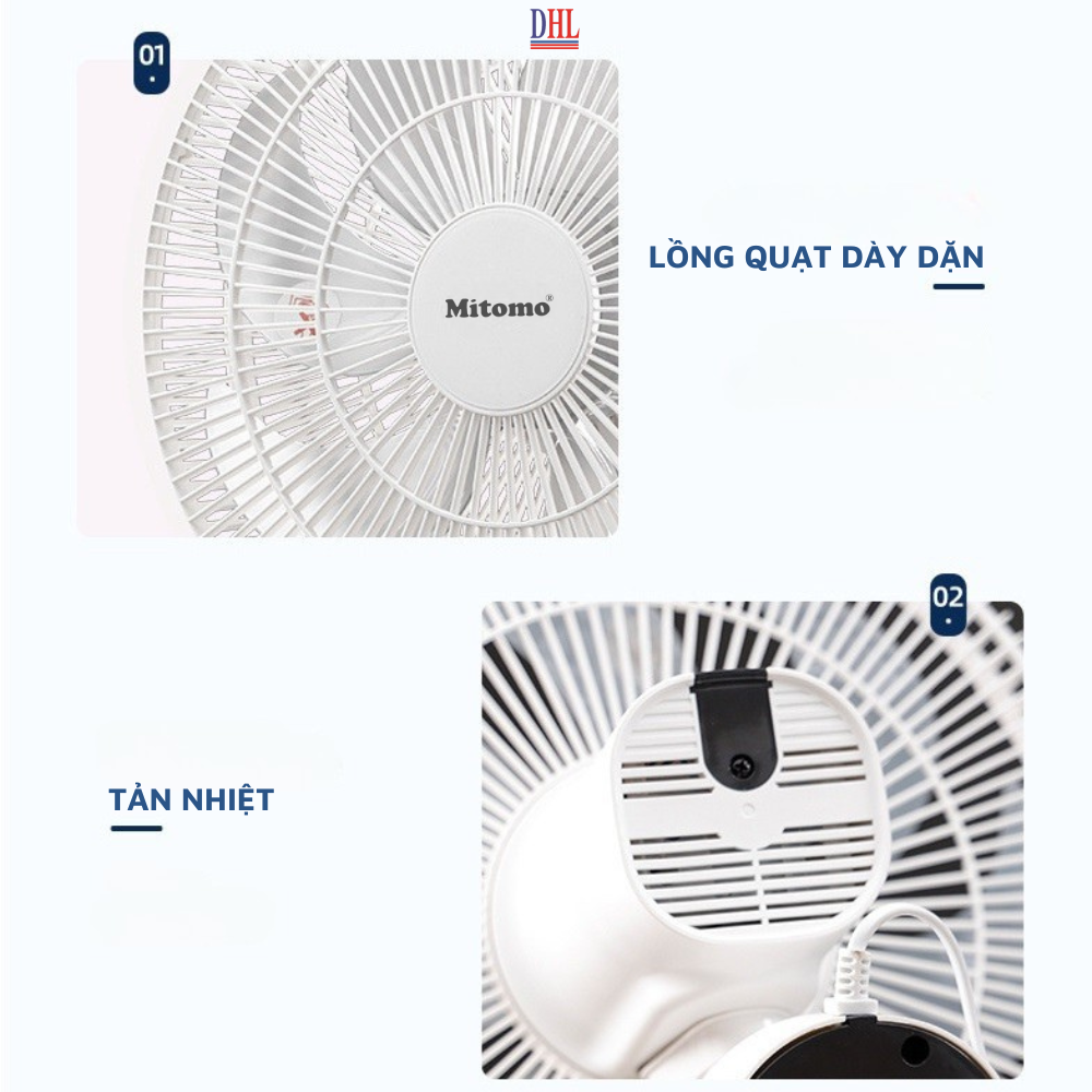 - Trạm bảo hành có mặt 64 tỉnh thành, liên hệ Mitomo Việt Nam hoặc Mitomo Shop để biết trạm bảo hành gần nhất. Quạt treo tường Mitomo được thiết kế đơn giản, hiện đại với tông màu trắng chủ đạo. Thân quạt và lòng quạt làm từ nhưa ABS cao cấp, mang lại vẻ sang trọng và chắc chắn. Quạt có điều khiển từ xa, tích hợp chức năng hẹn giờ thông minh. Ba cấp độ gió cùng tính năng xoay đa hướng giúp gió phủ rộng và đều hơn. Điểm đặc biệt của chiếc quạt Mitomo FTT-60AEC-D39 đó là độ ồn cực thấp, nên rất thích hợp dùng cho phòng ngủ và những người nhạy cảm với tiếng ồn. Quạt dùng động cơ DC nên cực kỳ bên và tiết kiệm điện năng. Tính năng nổi bật của quạt treo Mitomo FTT-60AEC-D39 chính hãng