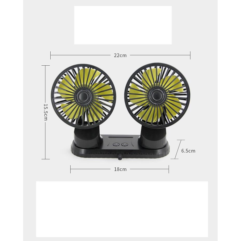 Quạt đôi, mini 5V, 12V, 24V cao cấp để trên ô tô tiện lợi cực mát 3 chế độ đầu tẩu, usb xoay 360