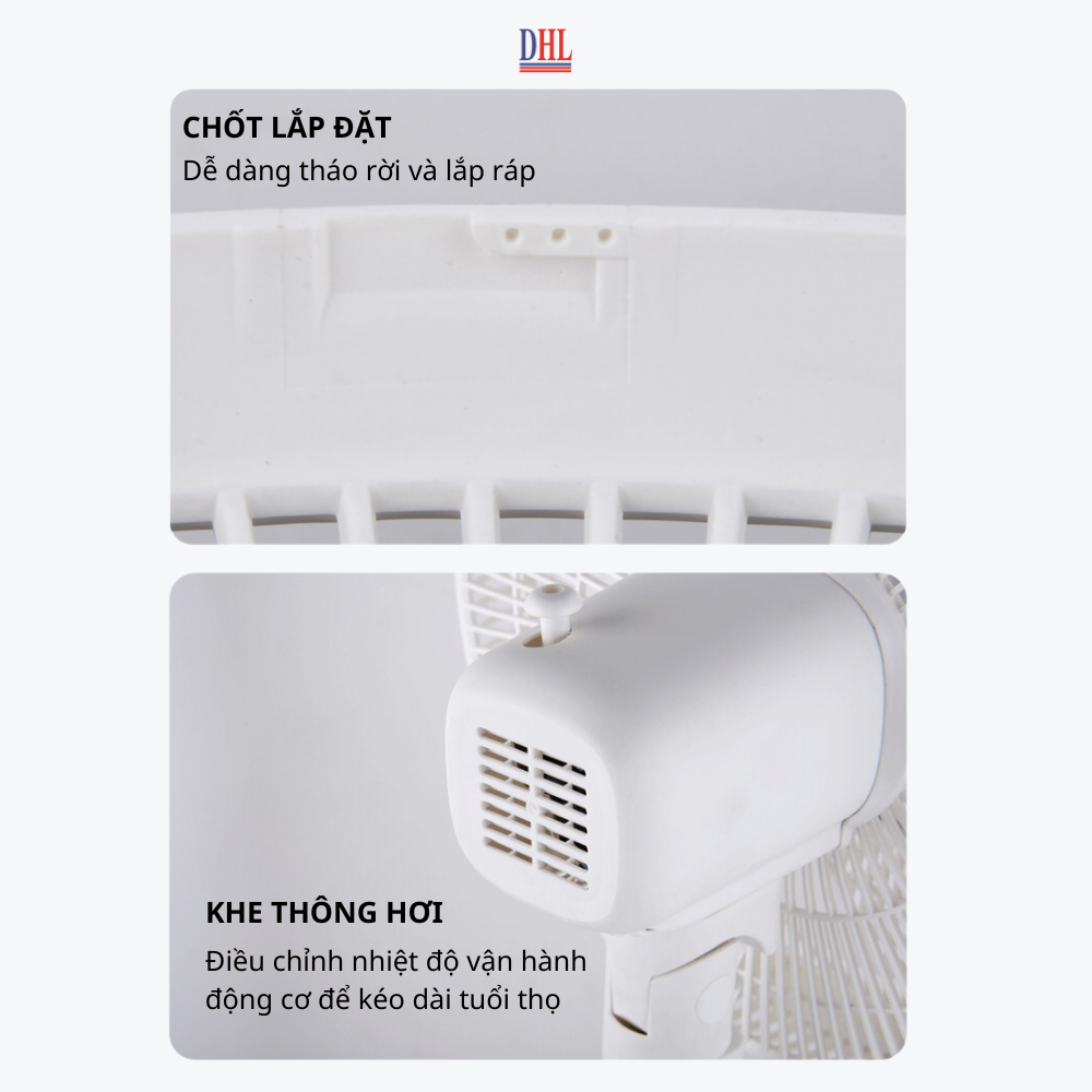 Model - L1638 • Dòng sản phẩm: Quạt Lỡ • Tốc độ gió: 3 tốc độ • Cánh quạt: 3 lá • Chuyển hướng cơ. • Chiều cao sản phẩm: 77 cm - 95 cm AN TOÀN SỬ DỤNG SẢN PHẨM