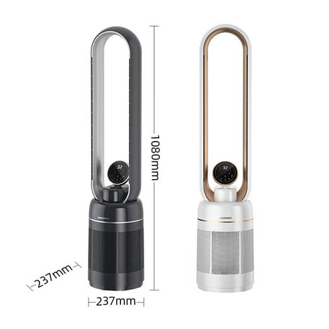 Sử dụng công nghệ Air Multiplier tạo ra luồng không khí mạnh mẽ liên tục. Luồng gió mát mà không cần cánh quạt quay nhanh, an toàn cho trẻ em, vật nuôi. Hoạt động êm