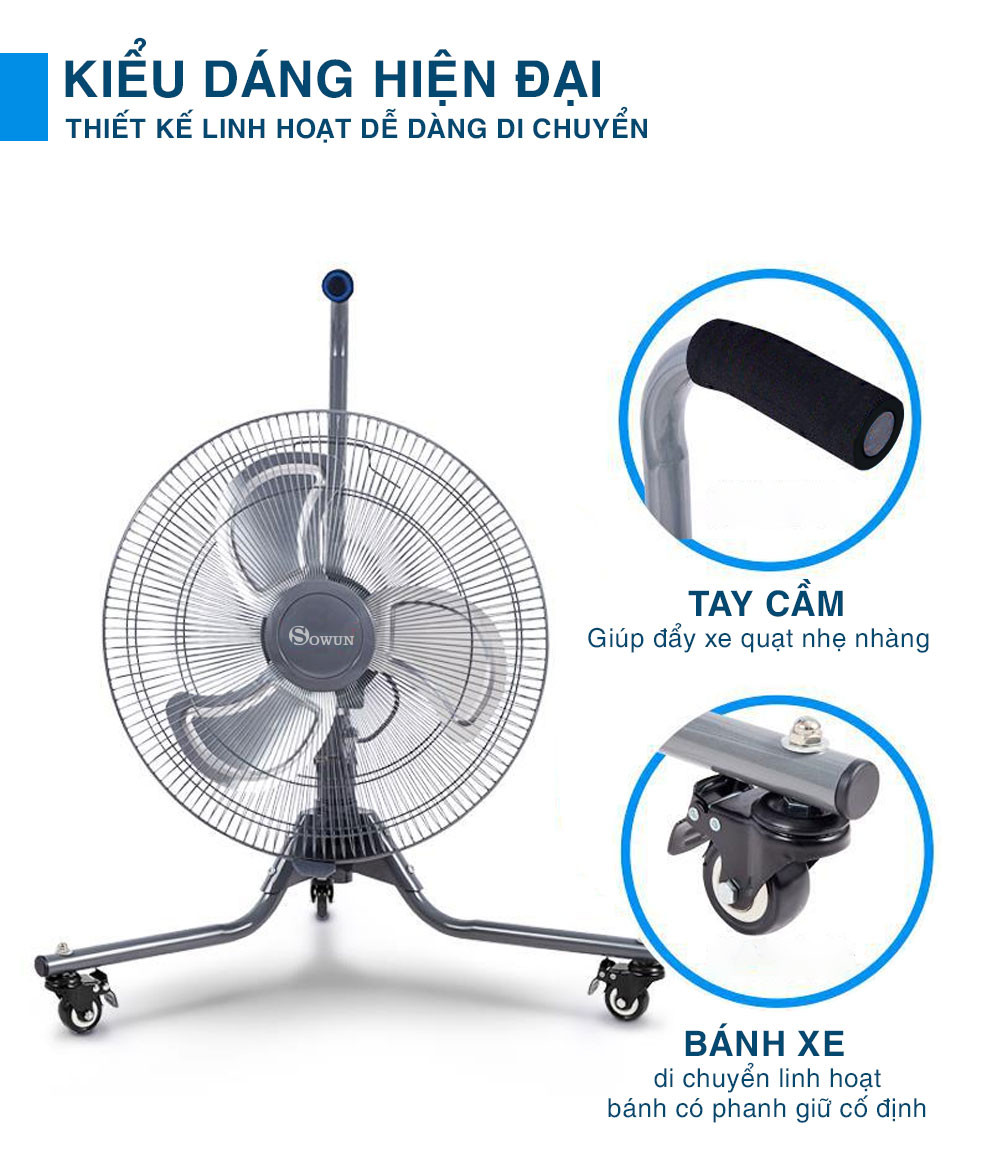 Quạt xe đẩy 3 bánh công nghiệp SW 825 - Sowun - Thương hiệu: Sowun - Model: SW 825 - Kích thước cánh: 18 inch (300 mm) - Công suất : 130 W - Chức