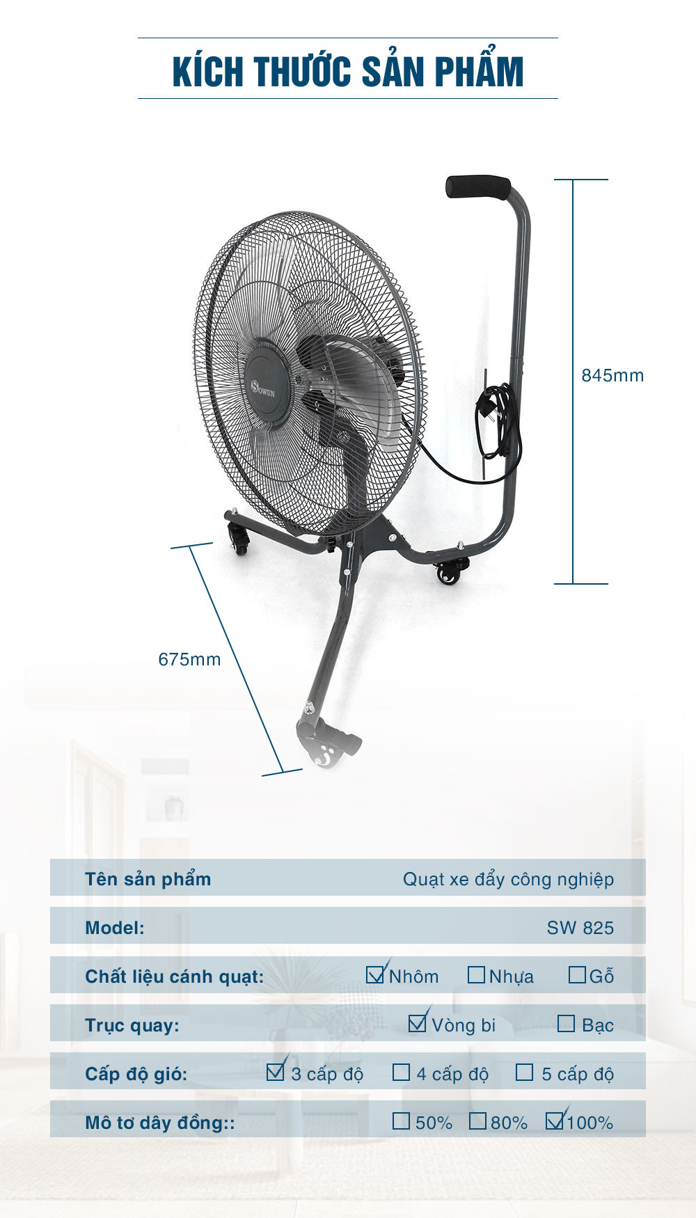 Giới thiệu quạt công nghiệp có bánh xe đẩy Sowun SW825