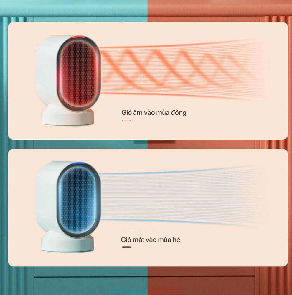 - Hai chế độ quạt sưởi hoặc quạt mát.