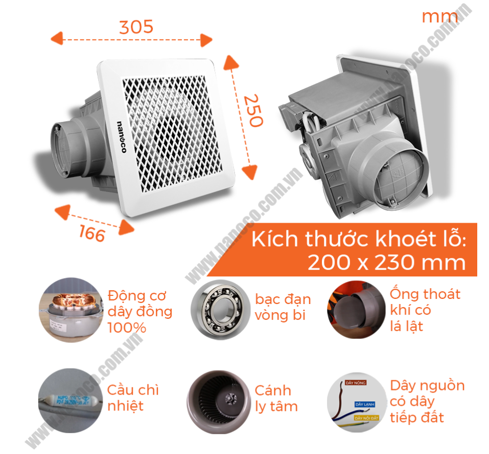 Quạt hút âm trần lồng sóc Nanoco - độ ồn siêu nhỏ chỉ 35dBA