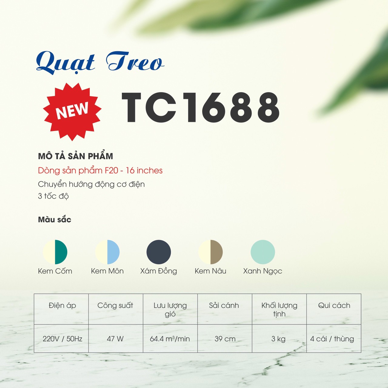 ✨Quạt treo tường Senko TC1688 công suất 47W, mẫu mới 2022 - Giao màu ngẫu nhiên - Hàng chính hãng