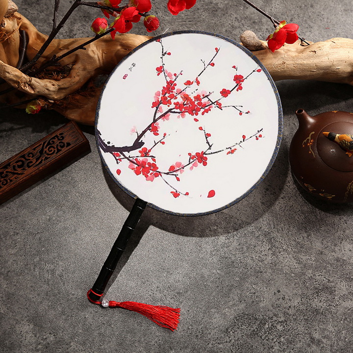 ✨Quạt tròn cổ trang hoa mai đỏ loại nhỏ đường kính 21cm