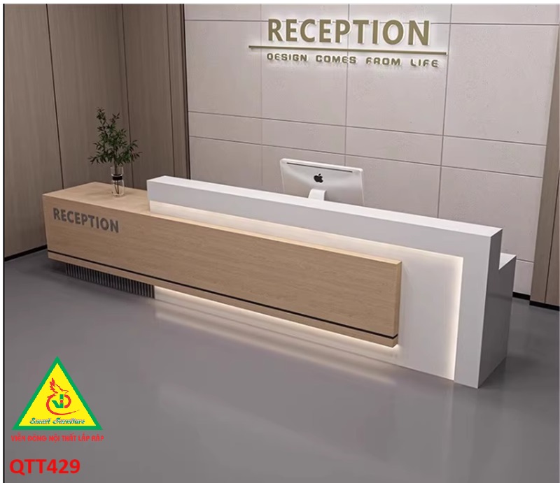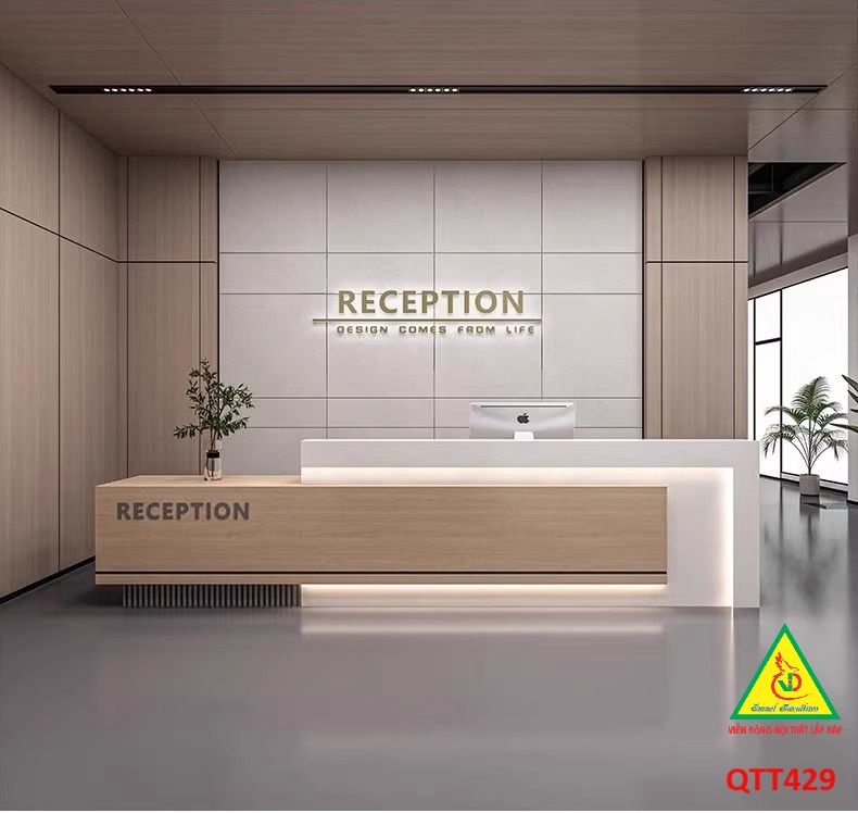 Tính thẩm mỹ: Gỗ có vẻ đẹp tự nhiên, tạo cảm giác ấm cúng và gần gũi. Quầy tiếp tân bằng gỗ có thể điểm tô cho không gian với các mẫu mã và hoa văn khác nhau, phù hợp với phong cách trang trí và thiết kế tổng thể của doanh nghiệp.