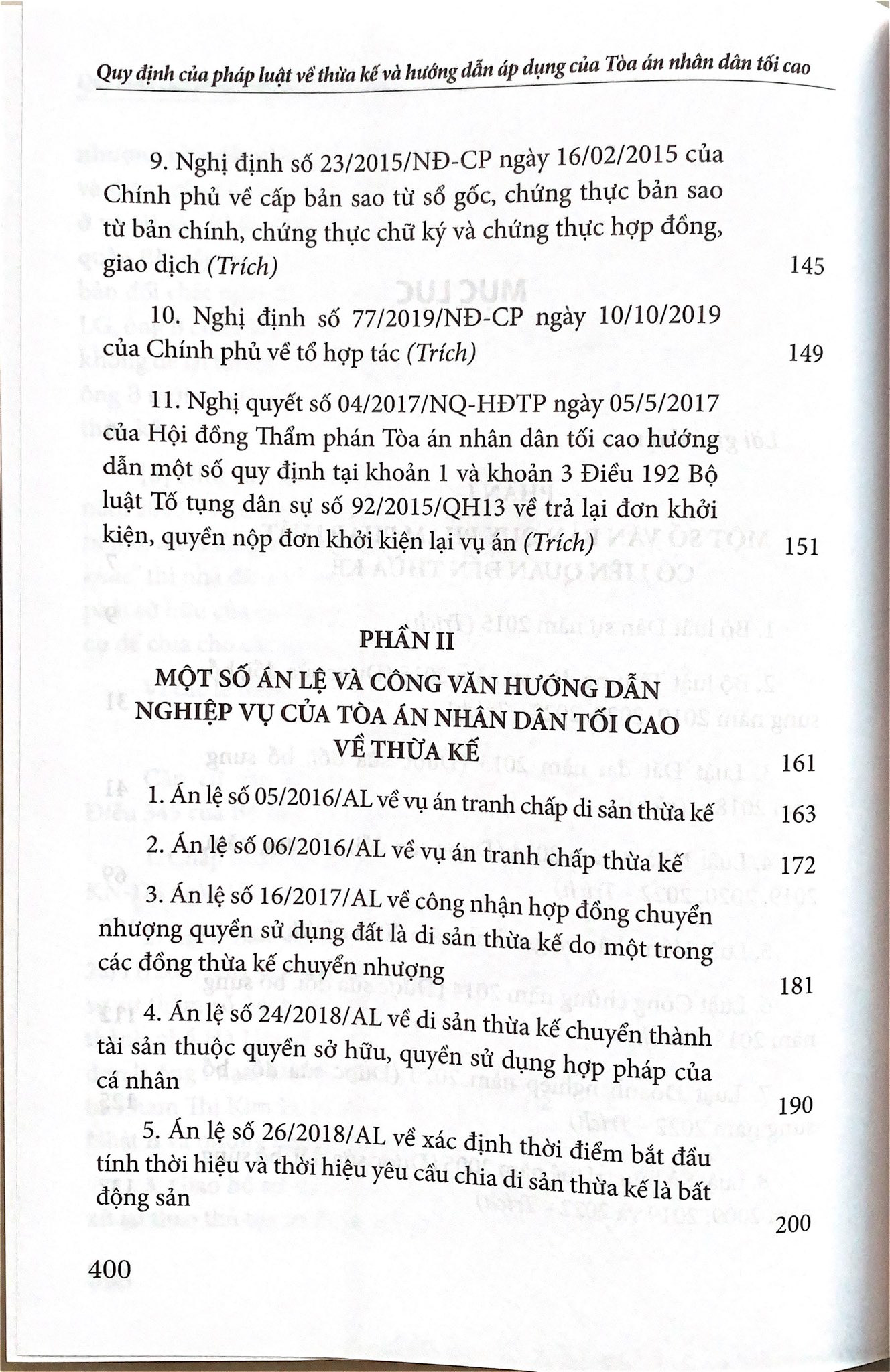 - Một số án lệ và công văn hướng dẫn nghiệp vụ của Tòa án nhân dân tối cao về thừa kế III. Một số quyết định giám đốc thẩm của Hội đồng thẩm phán tòa án nhân dân tối cao về thừa kế