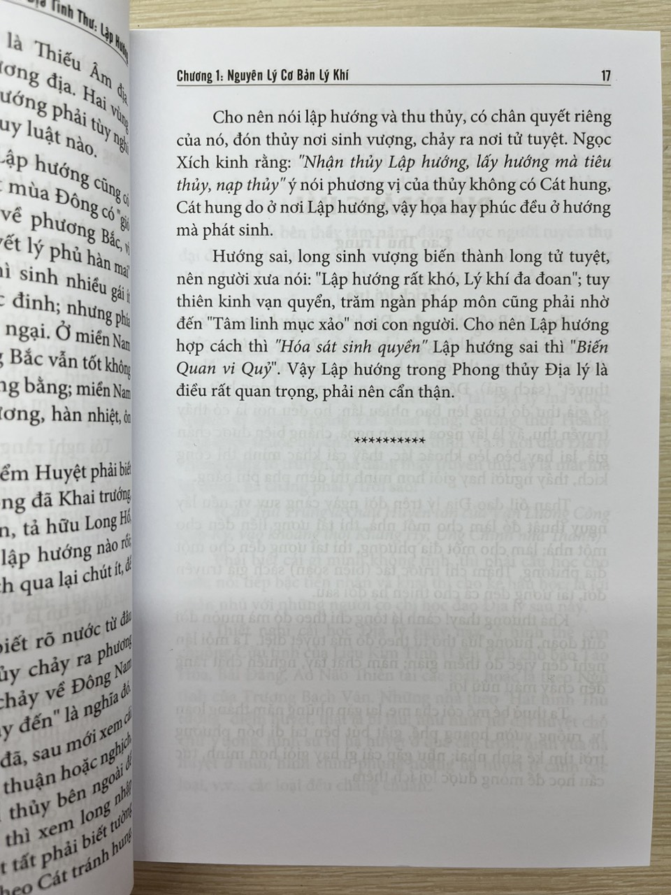 Cuốn sách cung cấp đầy đủ về lập hướng và hướng như thế nào là hợp với mỗi người. Để từ đó bản thân bất kì ai cũng có thể chọn ra hướng phù hợp với mạng mình. Cuốn sách đem đến cách nhìn mới và đảm bảo tính chính xác cao cho việc nghiên cứu về phong thủy địa lý.