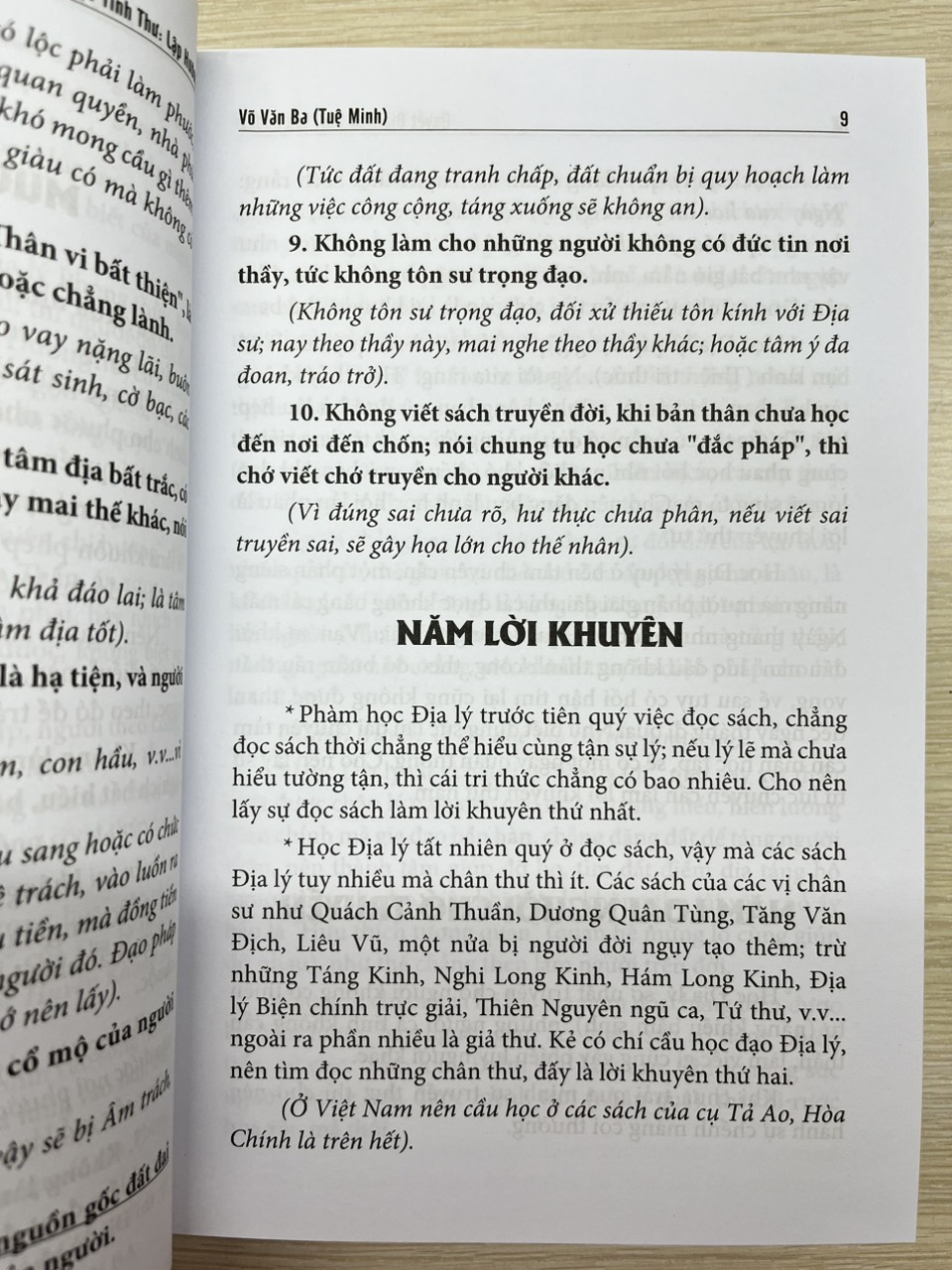 Cuốn sách khẳng định lập hướng có năm bảy cách, người theo Long, kẻ theo Thủy,áp nào cũng có cái hay riêng của nó; chọn sao cho nhiều tốt ít hung là được, trong thế gian không có gì thập toàn, thập mĩ cả.