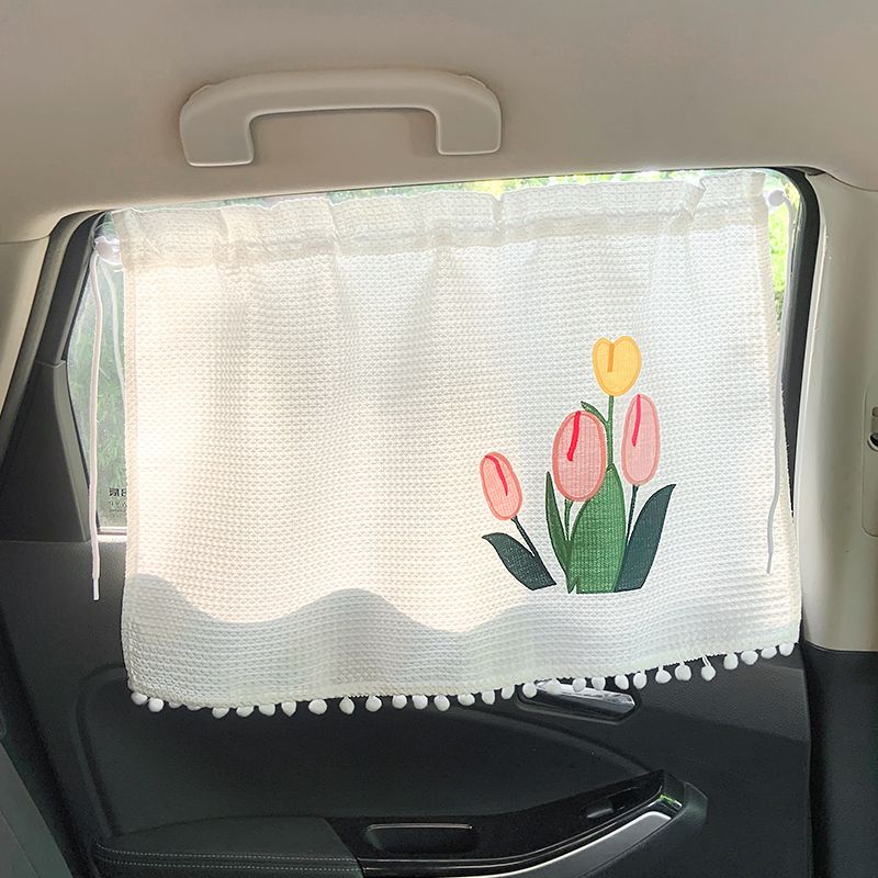 Rèm Che Nắng Xe Ô Tô - Vải Cotton - Hoạ Tiết Dễ Thương Có Giác Hút Gắn Kính Xe Hơi