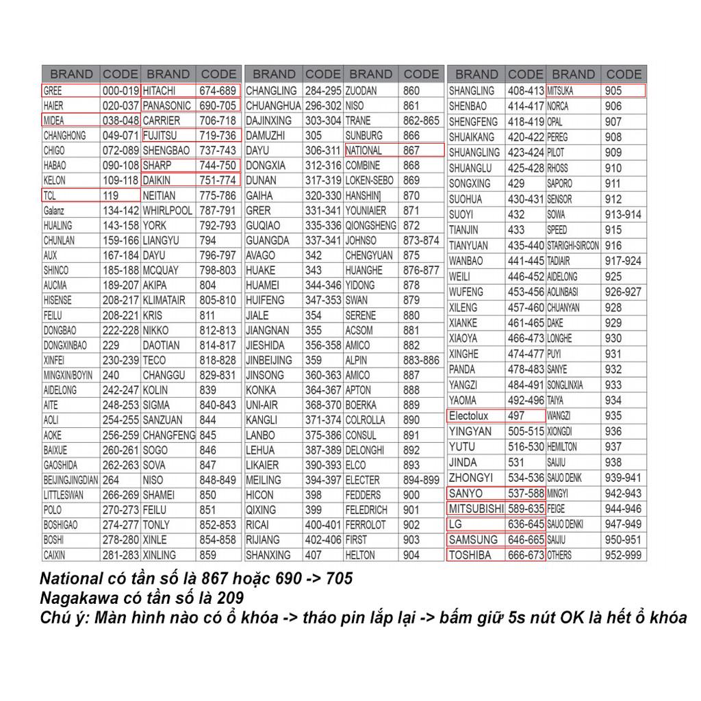 Hướng điều khiển về phía điều hòa.Bấm và giữ nút "Set"(Khoảng 6 giây) điều khiển sẽ tự động chạy dò mã bắt đầu từ 000 đến 999.