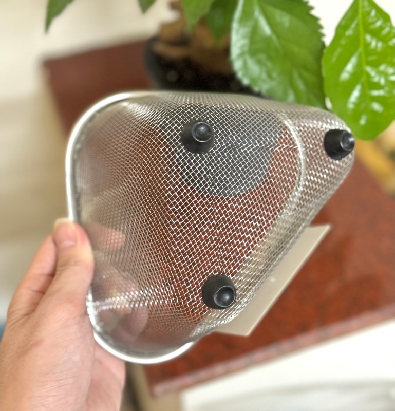 - Rổ thiết kế các lỗ thoát nước đồng đều nhưng không quá lớn, không chỉ giúp thoát nước mà còn hạn chế được khả năng thất thoát nguyên liệu trong quá trình rửa. Sản phẩm có các thanh inox gia cố xung quanh, đảm bảo sự chắc chắn.