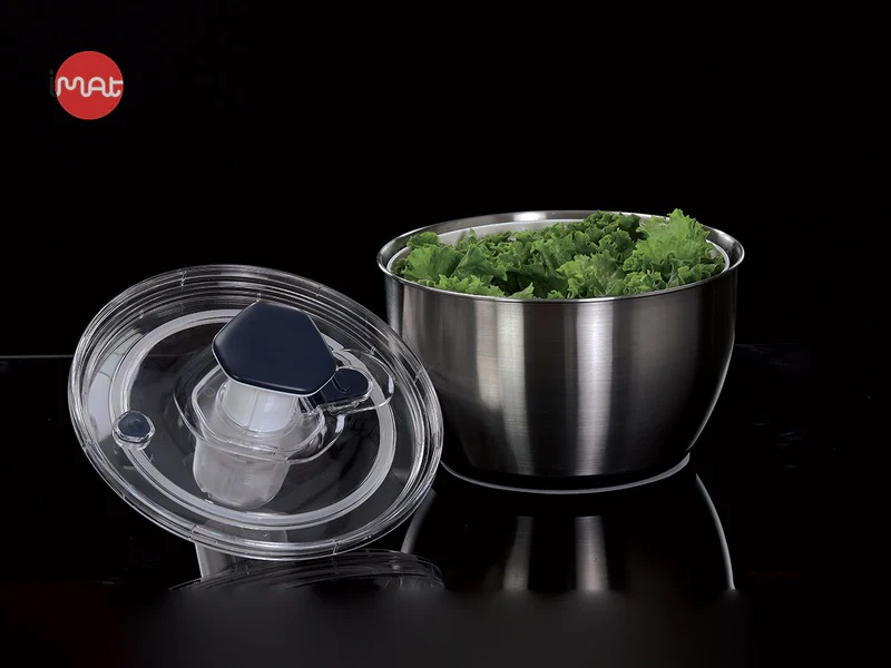 Để làm món salad ngon đúng chuẩn, điều quan trọng nhất là rau phải thật ráo nước. Nếu rau còn đọng nước sau khi rửa, nước sốt sẽ bị loãng, rau mất độ giòn và nhanh héo. Thông thường bạn phải chờ rau tự ráo, hoặc dùng tay vắt từng nắm rất mất thời gian và dễ làm dập rau.
