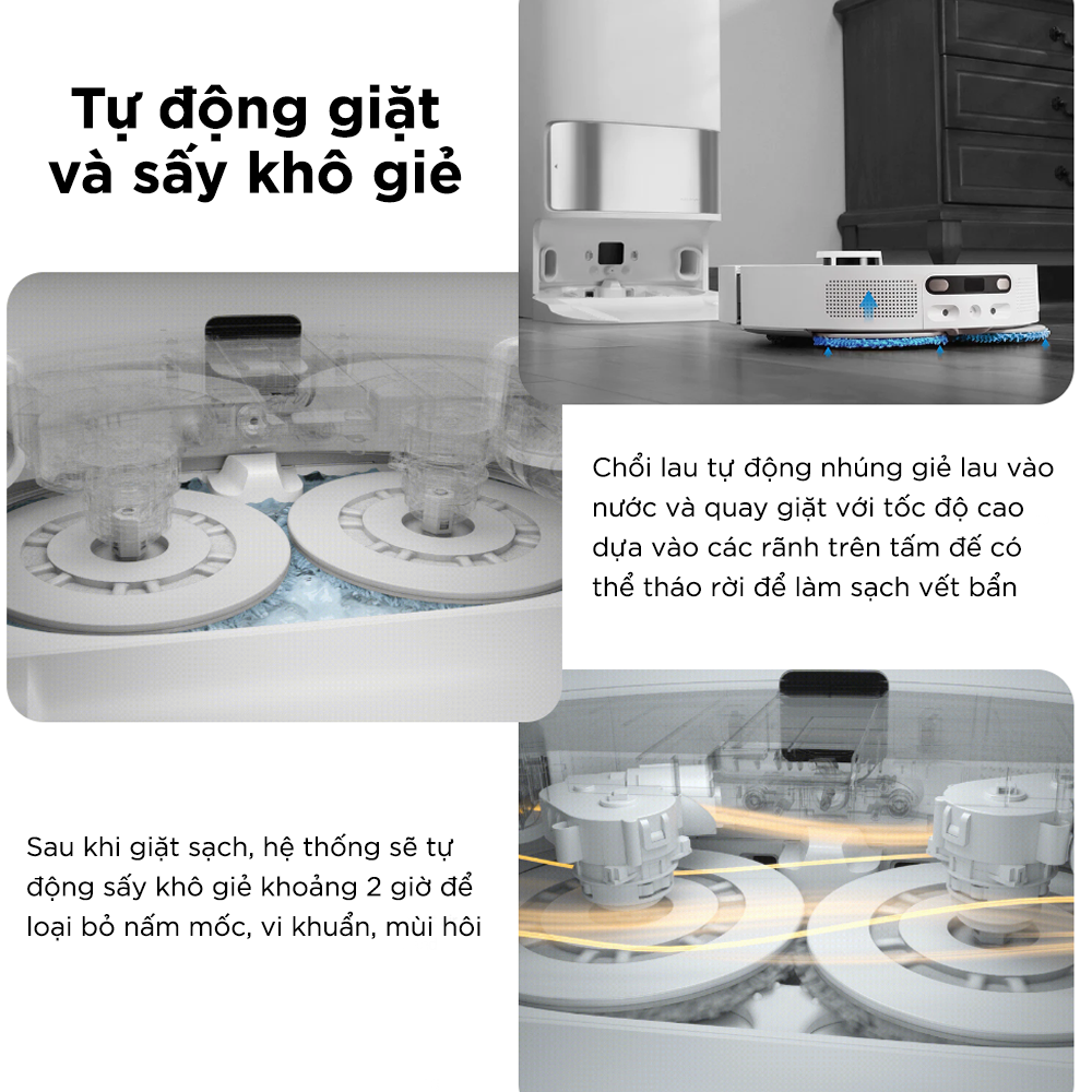 CÔNG SUẤT HÚT MẠNH MẼ chế độ lau chế độ hút 4000PA Hút sạch và cực sâu, loại bỏ hoàn toàn bụi và rác mang lại bầu không khí trong lành lý tưởng.