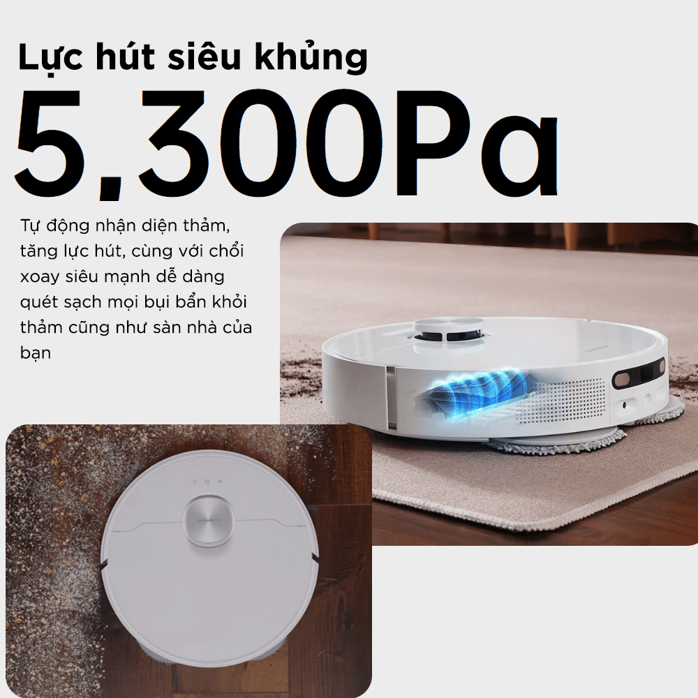 Ưu điểm của robot hút bụi lau nhà Dreame D20 - Sức mạnh vượt trội với lực hút Vormax 13.000Pa mạnh mẽ - Giải pháp làm sạch thảm ấn tượng, tự động điều chỉnh lực